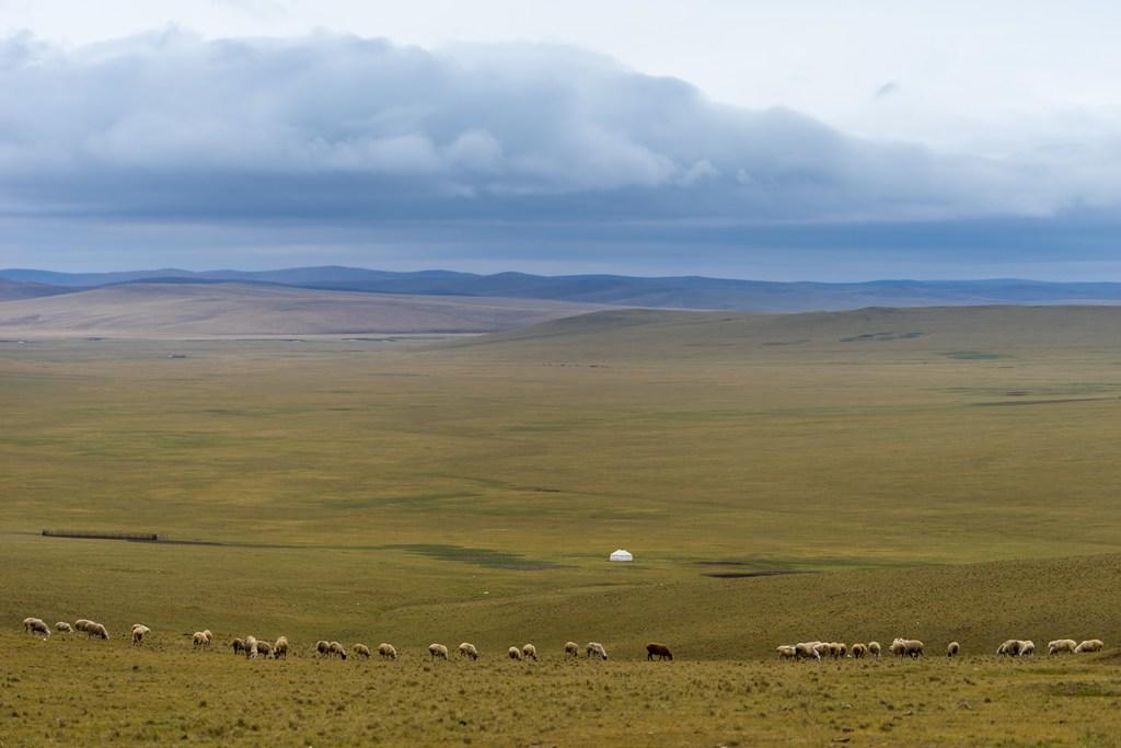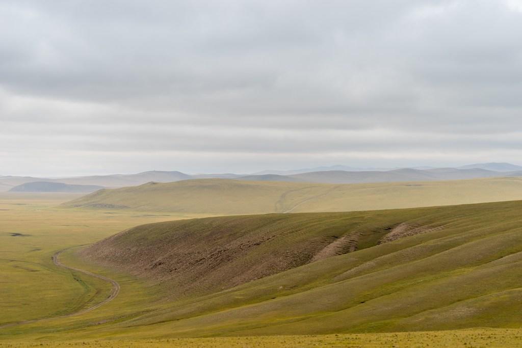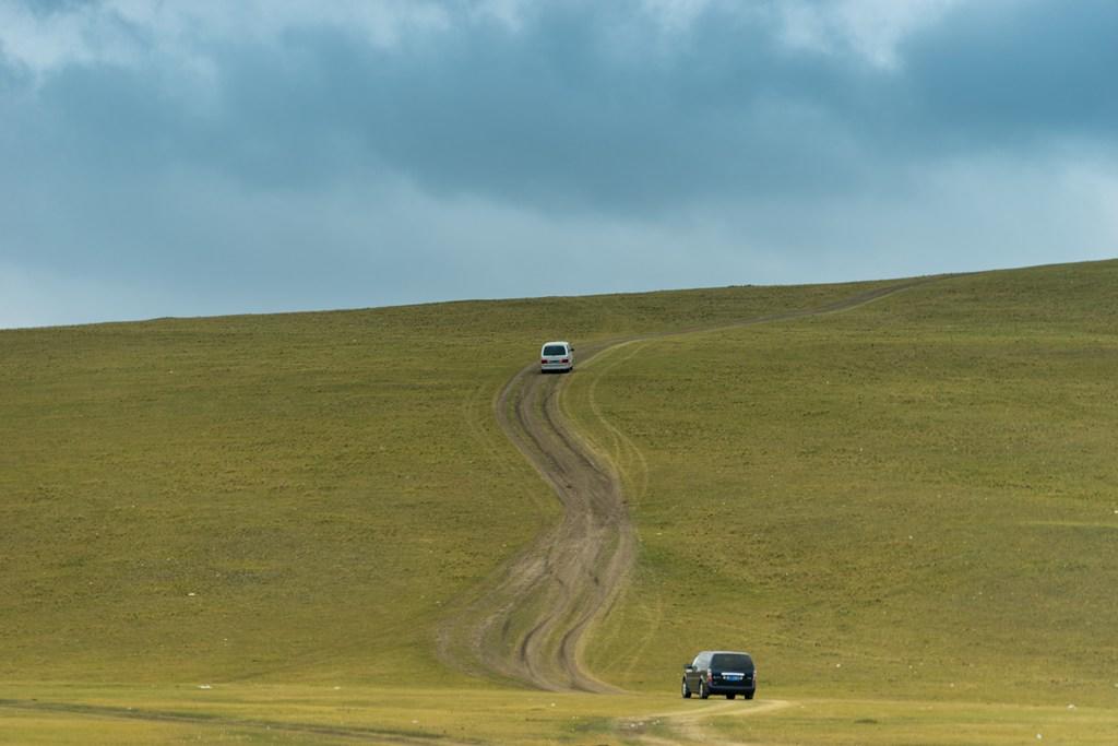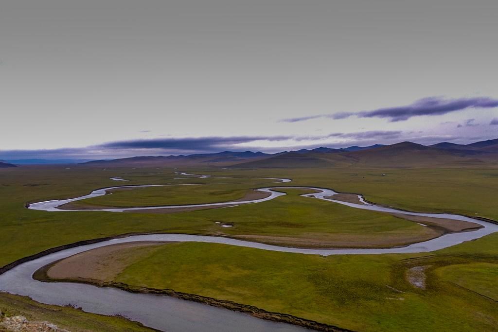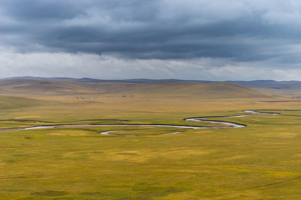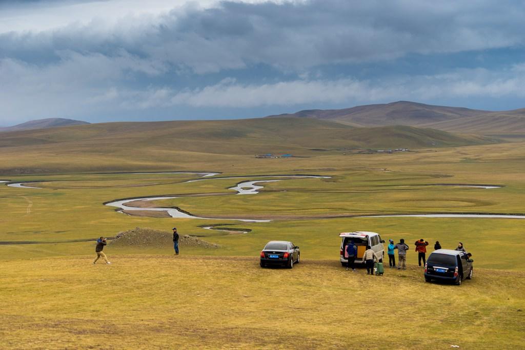 进了草原就是这样的路,确实不太好走,不但要技术,也要看老天爷的心情。开到中间有一段下雨,前面另外一个车队有辆车就打滑了,于师傅准备齐全,拿拖绳帮人家拖出来了,这下你就知道为什么要几辆车一起进草原了吧。这里的人虽然有蒙古也有汉人,但都是草原汉子,不论蒙汉,都是豪爽直接,帮起忙来都很热情。 你看看当时这路况,因为下了点雨,草原的路肯定是会积水的,这时候就需要师傅有预判能力和原来对路的熟悉情况了,很考验技术。当然,这个难不倒于师傅,于师傅开的就是这个别克商务车,别看不是越野车,但开起来可不是比越野车差呀 穿越草原最大的看点就是看号称“天下第一曲”的莫日格勒河。要看到这条河不容易,因为大草原的,找个高点不容易,如果你走一般的公路,好的景点都被当地人圈起来收费了,20元一人,还好穿越草原的话,还没人收费,强烈建议来这边看了 当时就我们几辆车,国庆节也是这样,本身就没多少人,这条路线就更少了。另外,别看我们这几车人现在挤点,一下车,撒兵成豆,在大草原上,就成个小绿豆了。 可惜的是当天没有蓝天白云,照相的效果差了很多,小军说如果是夏天的话,漂亮得没话说
