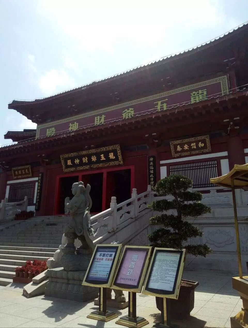 网友2020-05-22龙五爷财神殿供奉着南海龙王第五子——圣衍,龙五爷财神法像坐北朝南,庄严神圣龙五爷财神殿供奉着南海龙王第五子——圣衍,龙五爷财神法像坐北朝南,庄严神圣;慈悲威仪,广济天下,财神殿规模宏大,气势恢宏,主体建筑为上下两层殿堂,建筑风格独特、装饰精美,自外而内,层次分明,布局严谨。