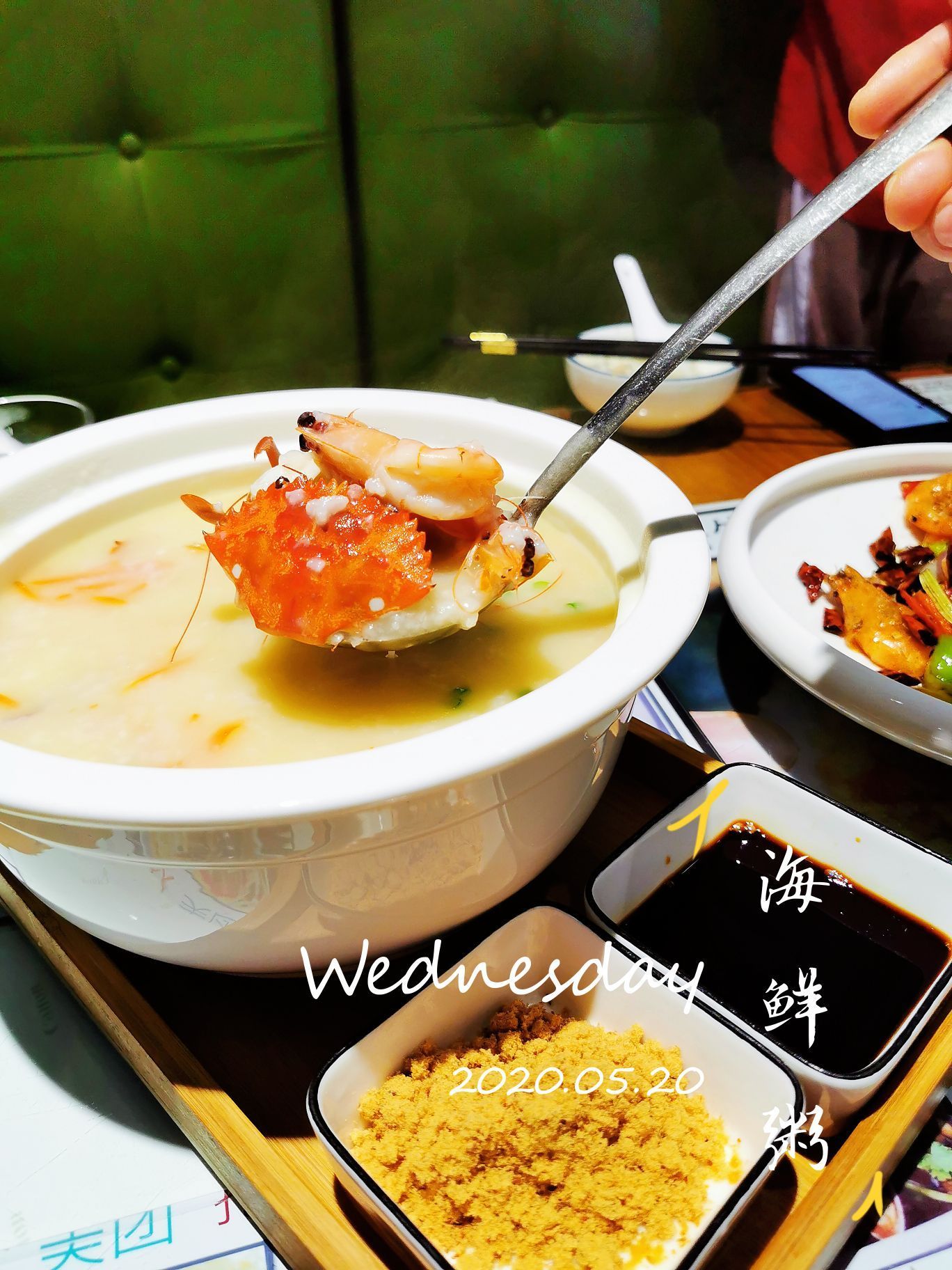 点了|徐记一海鲜粥^非常不错呀,石蟹肉很饱满紧实,香味足,一锅粥里满满都是蟹虾鱿鱼,超鲜,粥熬得很稠