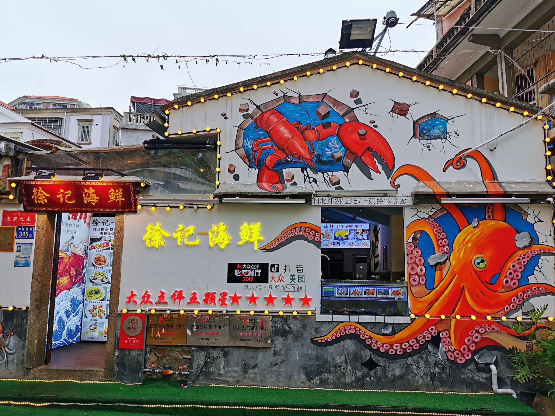 鼓浪屿我又来啦!五月的初夏里,最妙的是下点儿小雨呀,天气微凉舒适,这时候赶紧来鼓浪屿玩吧。 今天来徐记吃饭,从龙山洞穿过来到内厝澳这边走几分钟就到了,点了|徐记一海鲜粥^非常不错呀,石蟹肉很饱满紧实,香味足,一锅粥里满满都是蟹虾鱿鱼,超鲜,粥熬得很稠,我一个人能吃好几碗! |鼓浪屿四宫格^海鲜四宫格的凉菜很适合夏天,海蜇皮我很喜欢,脆脆的,不会咸,有大海的味道呢。 店里海鲜都是现点现煮的,很地道,价格也很合适。餐后加一扎芒果爽,这是夏天的滋味呢。