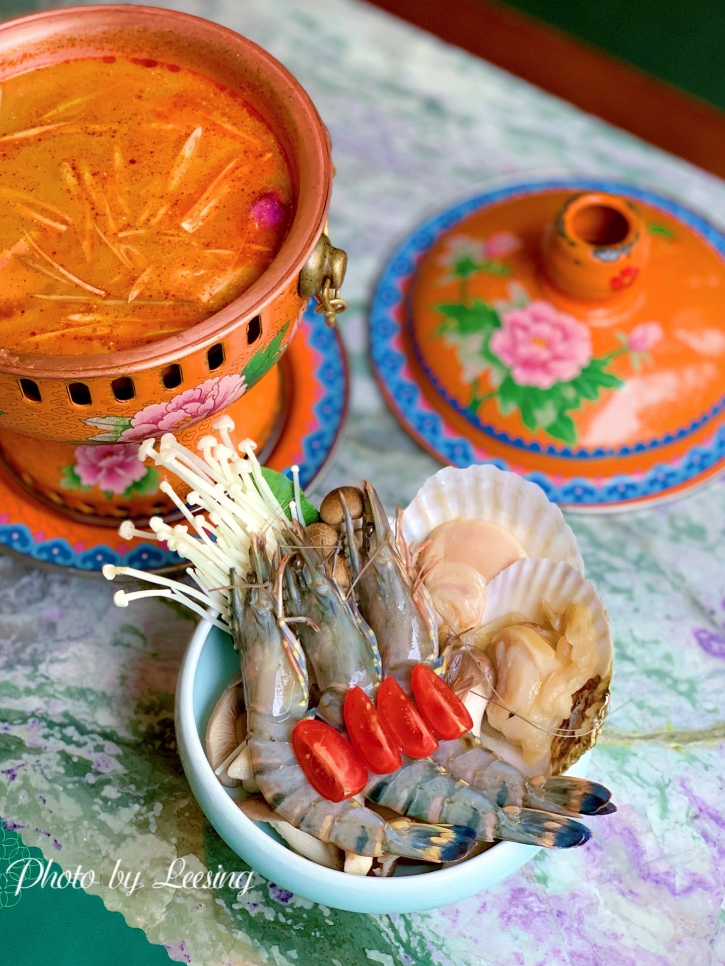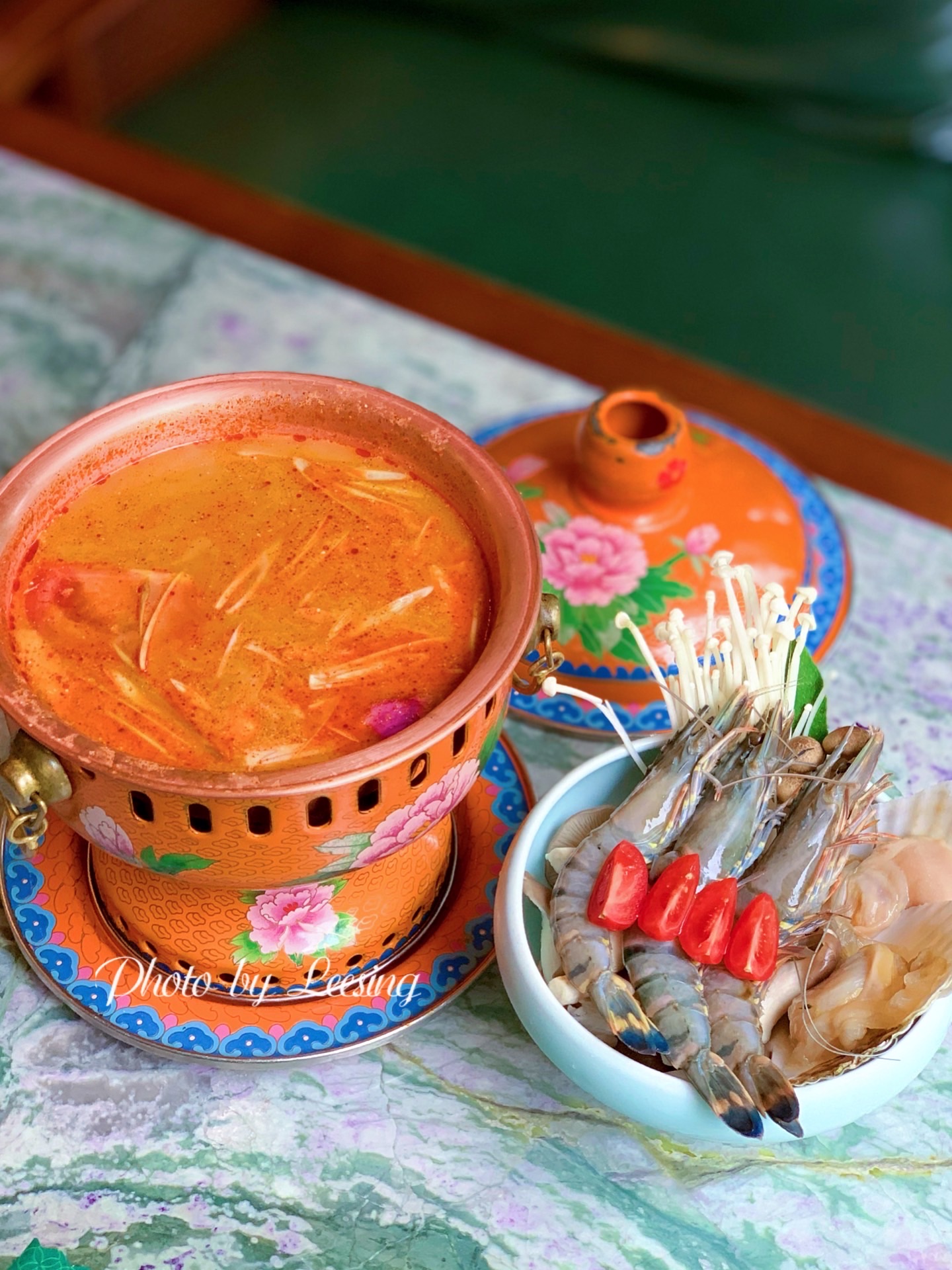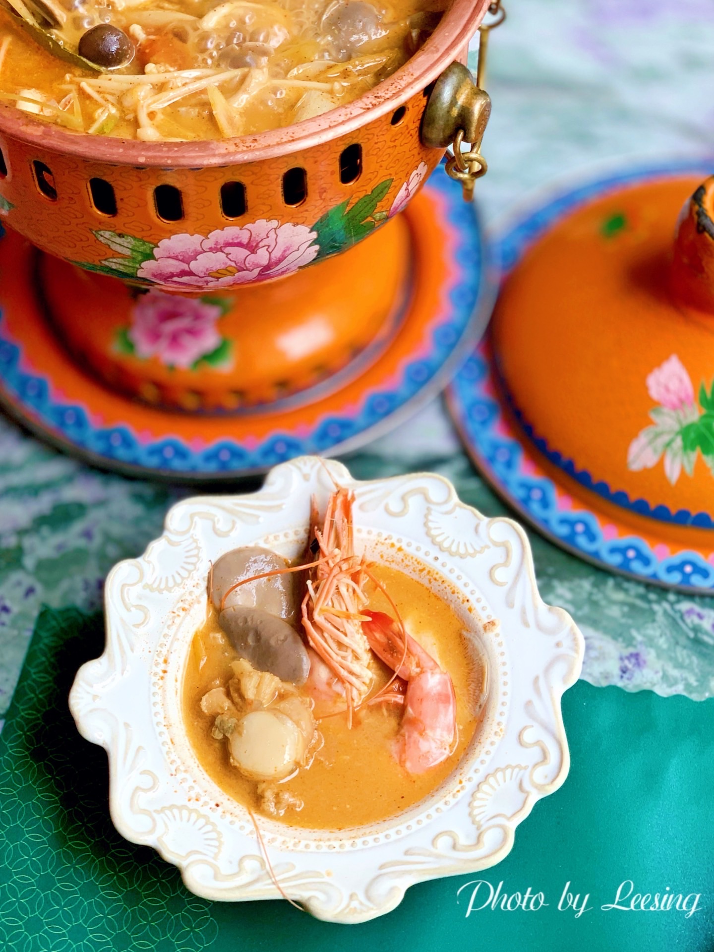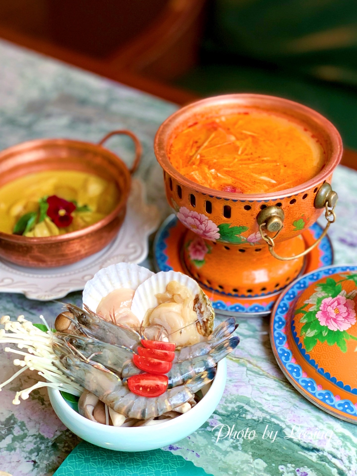 雀越·Queen,躺在小歆收藏里好久的一家东南亚餐厅,终于找了个合适的时间过来用餐。 雀越·Queen环境真的是爱了,南洋风格的独立建筑,祖母绿为主色,搭配、水晶吊灯、孔雀装饰、花砖地板,高级复古风完美诠释。 东南亚菜,咖喱、冬阴功汤是铁铁要点的,咖喱做的还是比较闽南口味的,很好入口,鸡肉特别嫩,口感很好。冬阴功汤海鲜另外自己烹煮,汤底一般。 比较不满意的就是鱼缸冰淇淋了,一份108元还是比较贵的,可能主要还是因为不好吃所以觉得贵吧,芝士特别之腻,而且松散,感觉是一道失败的甜品。 服务方面确实也是很一般,需要好好培训加强服务意识。