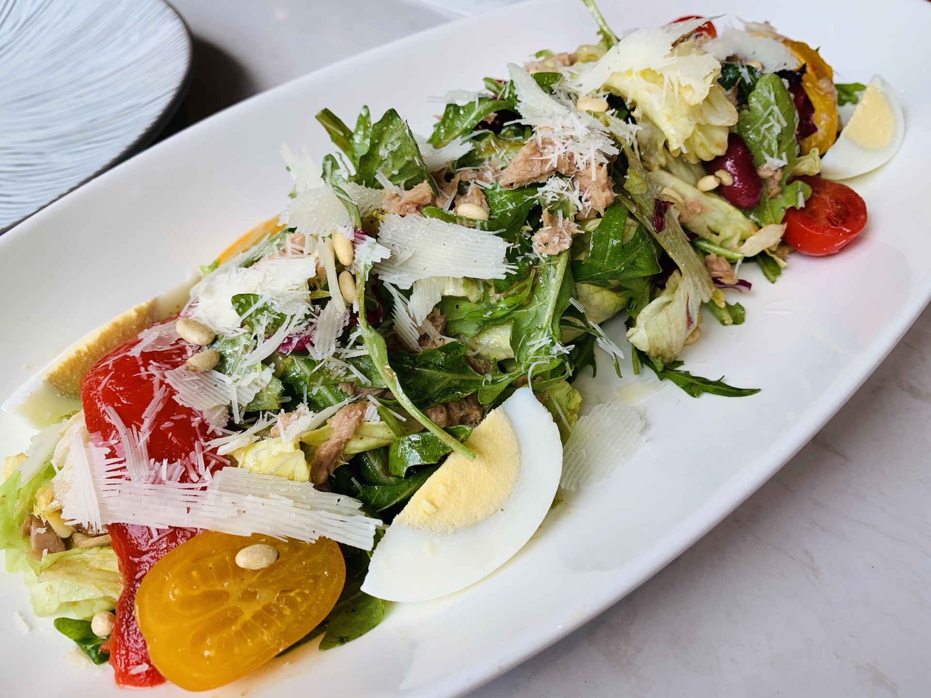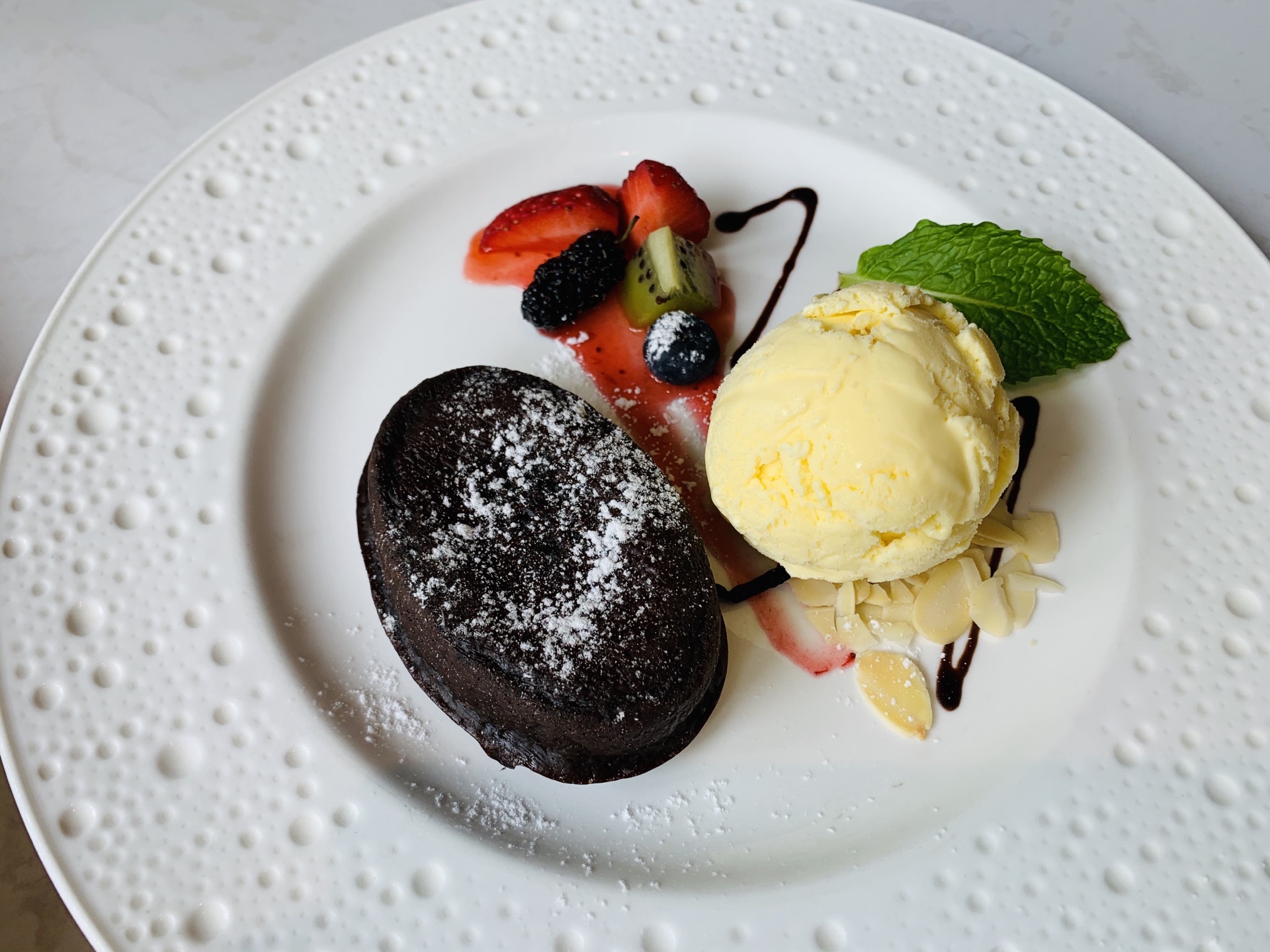 已经是第二次来意坊了,对这家店的印象感觉还不错的,这家店是在西湖大道上的,店里的环境很棒,尤其是1楼到2楼的这个楼梯吸引了很多人来这儿拍照,2楼的环境优于1楼,一般都是会提前预定的,这家店主要是以吃西餐为主的,比较适合情侣前来,到这里来停车不是很方便,不过乘坐地铁公交都是比较方便的,服务员的态度不错,一落座就会倒水,期间经常会前来加水,餐前包 ,一般的西餐厅都会赠送的,这款是偏硬的法棍,是蒜香口味的,可以配合油醋汁吃,低温慢煮温泉蛋佐奶油黑松露这款汤的味道有一股浓浓的奶香味,还会有黑松露的味道,不过相比之下奶香味更浓,还会配有温泉蛋,我比较喜欢的是戳破溏心蛋,让里面的黄流出来搅拌着一起,这样的口感最棒了,意坊招牌芝麻菜沙拉,很大的一份沙拉,量比较大,里面的配菜也有非常多的种类,而且色彩比较丰富,采用的是各式的彩椒还有小番茄和各种类型的沙拉菜,当然也有坚果等等,使得口感更佳丰富了,安格斯肉眼牛排,主菜选用的是安格斯牛排,这款牛排肉质细腻弹韧,撒上一点海盐和黑胡椒调味,一般推荐选择5分熟,相对来说会略微嫩一点,旁边还有一些蔬菜,品质不错,不仅在视觉上看起来比较舒适,味道也不差,鹅肝野生菌菇烩饭,这款烩饭一定要趁热吃,毕竟里面有鹅肝,凉了之后会有一股腥味,热乎乎的时候吃味道比较鲜美,鹅肝和菌菇的搭配是第一次尝试,还算是比较美味的。火焰巧克力熔岩蛋糕配冰淇淋,有火有冰,这就是冰火两重天的感觉,在切下去的一瞬间,巧克力会流出来这时候再挖一点冰淇淋混合着吃,既能缓解巧克力的甜腻,又能感受到冰爽的感觉,是我比较喜欢的,从环境和菜品品质来看,价格不算贵,性价比还算比较高的
