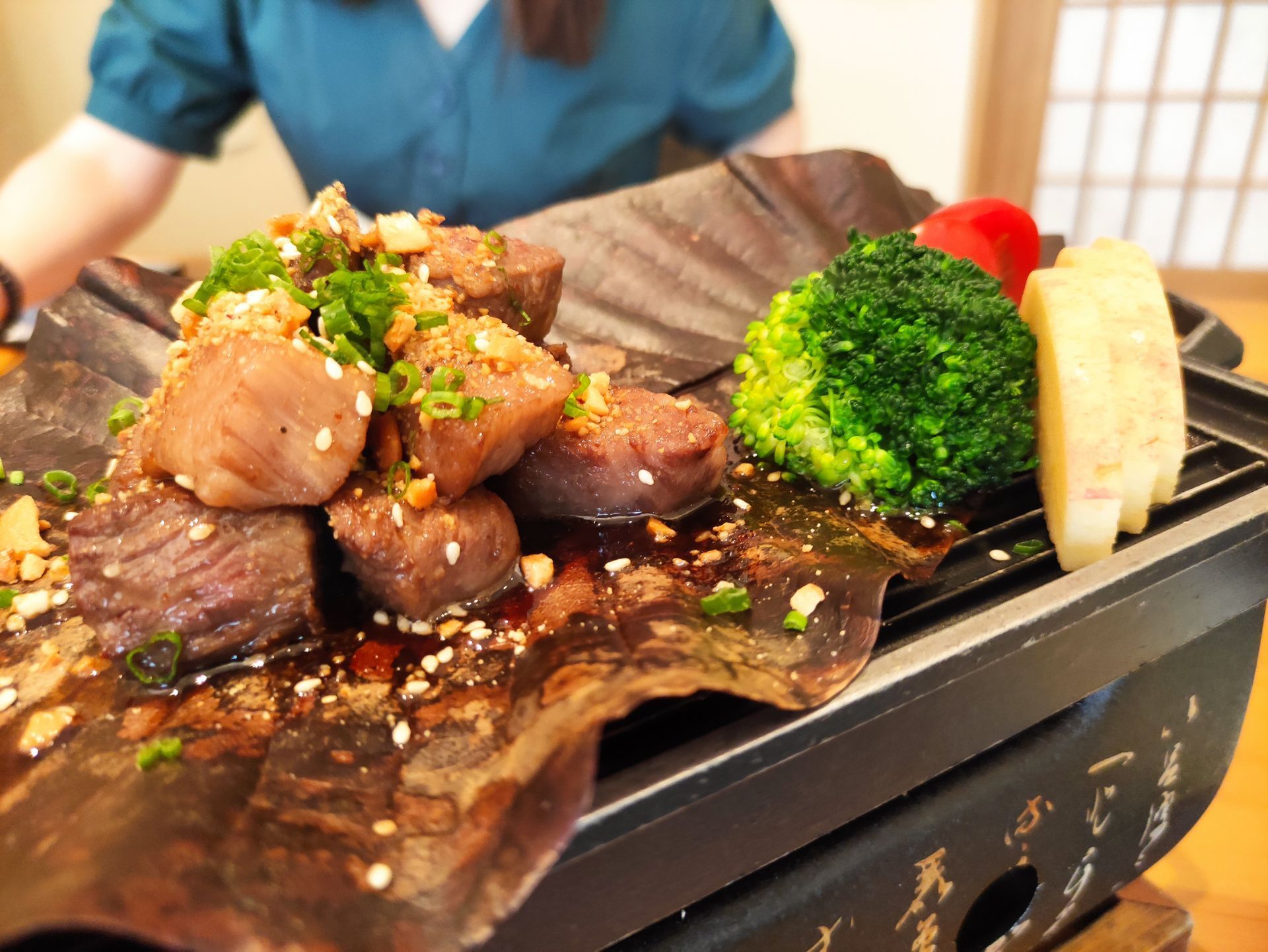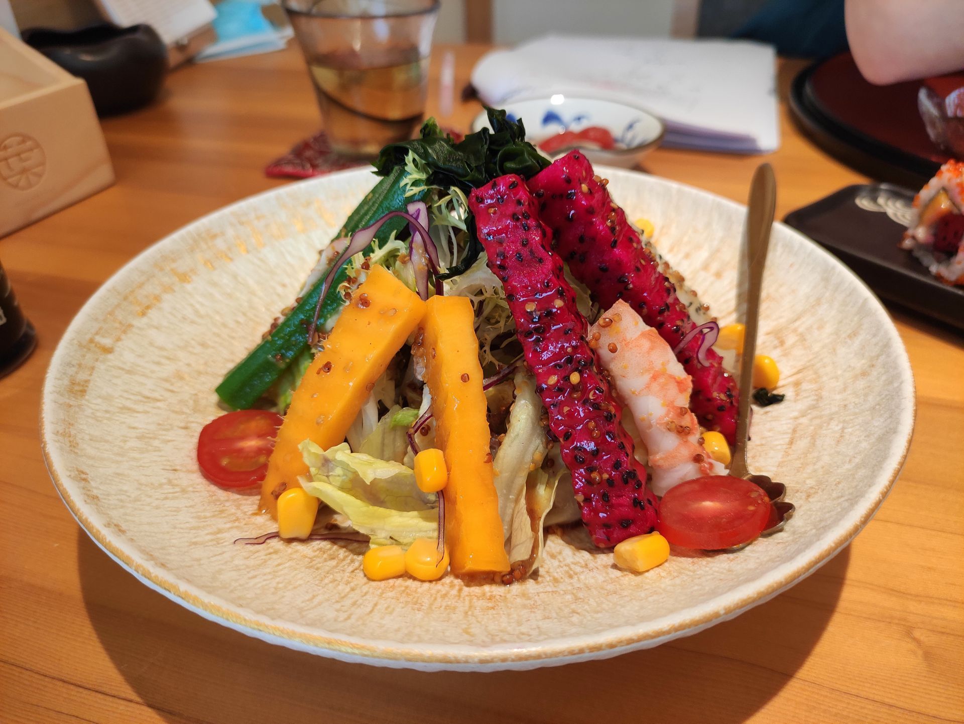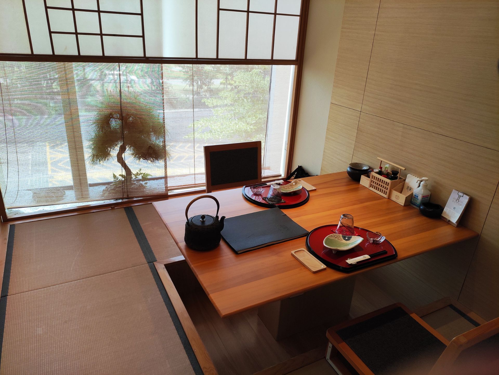 第几次来吃,照例是工作日午间套餐来一份,搭配均衡,还便宜不少钱。 来这吃饭记得提前预定小包厢,大厅环境虽好,但是人来人往的还是喜好包厢。 |三文鱼北极贝刺身双拼^刺身虽然长得都一样,但是品质好坏也是差距非常大的,不然也不会出现100多元日料自助和100多元一份刺身这种情况。 |榴莲水果卷^浓郁真榴莲,上桌味浓郁。 |烤青花鱼^老婆最爱,就是她吃完跟狗啃的一样。 |海鲜茶壶汤^每次来茶壶都不一样,我还是比较喜欢底下能加热的那种。 那些自助日料餐厅是吃不到这种|朴叶牛肉^的。 环境好,服务好,按了服务铃10秒就有人来,唯一不太好的就是牛肉炒饭不怎么好吃,味道有点寡淡,于是我自己加了辣椒拌一拌,还不错。