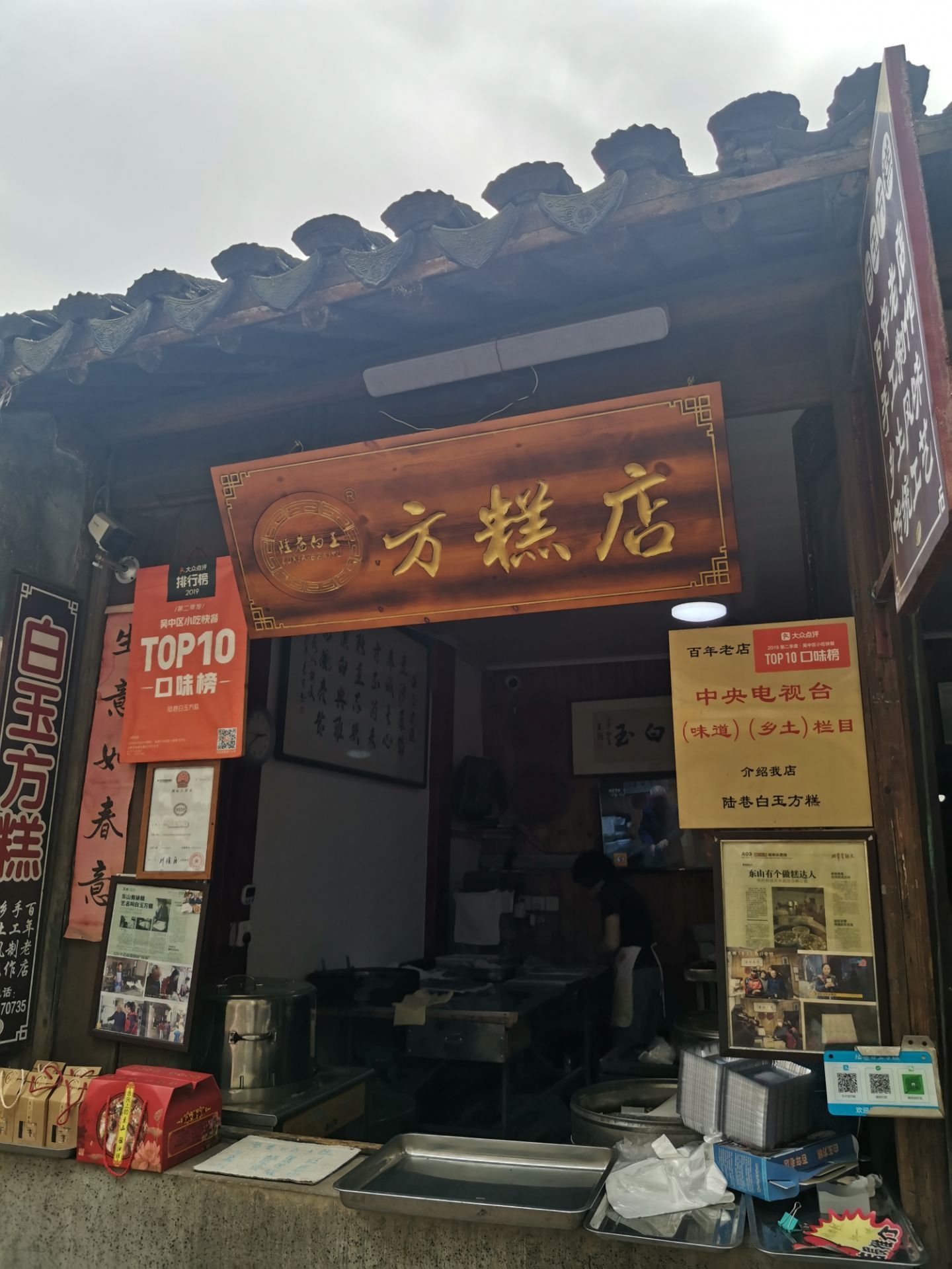 每年枇杷季到苏州东山陆巷古村采枇杷,顺便到村里转一圈,白玉方糕是必买的。 去牌坊的巷子里,门面挂满了各种媒体来采访的记录,阿姨不急不忙得做着手里的活儿,客人催也不影响她的节奏。 白玉方糕,10元一盒,枣馅一盒4只,豆沙一盒5只,枣馅的甜了点,豆沙的正好,软糯Q弹,好吃的。