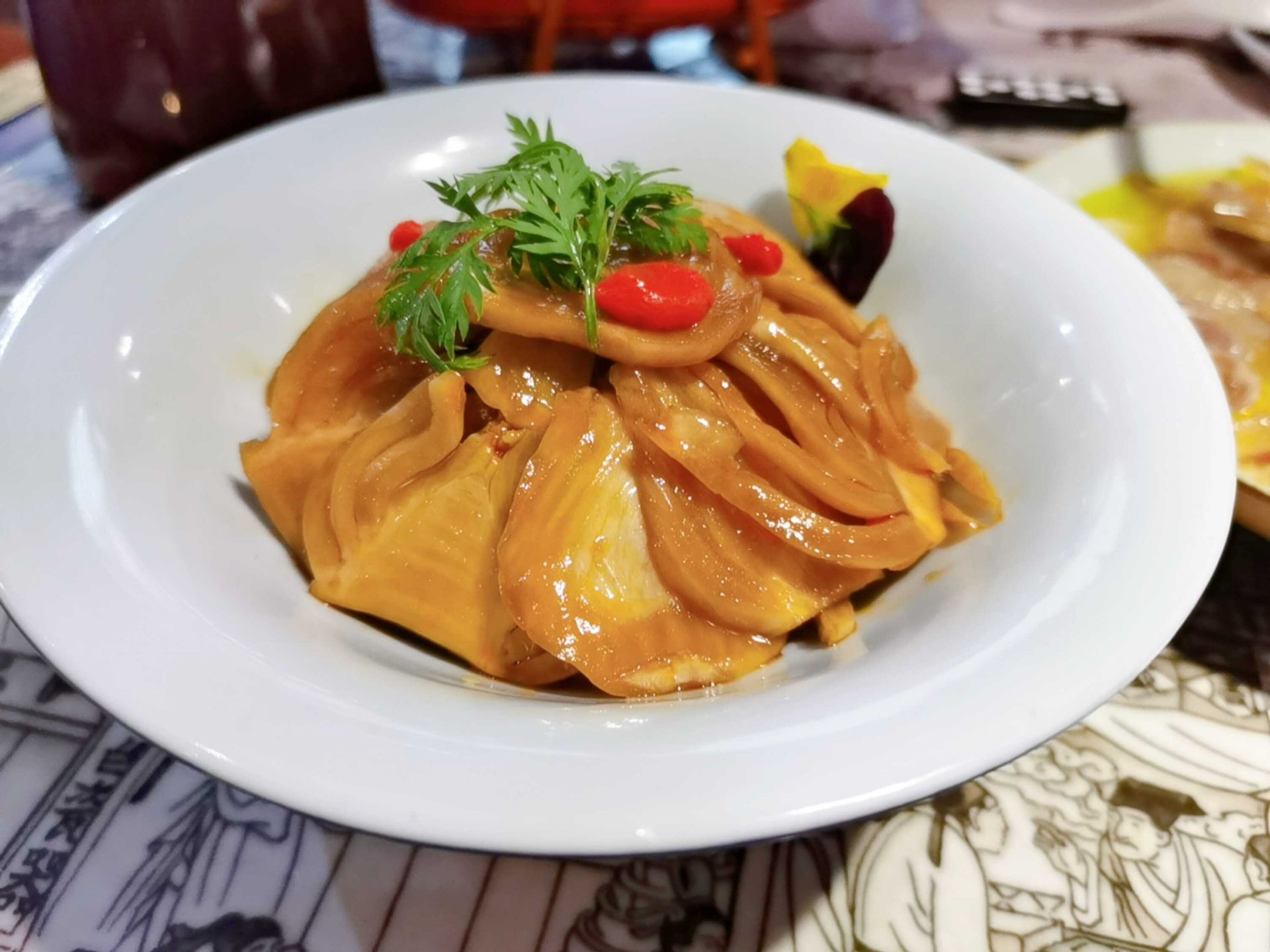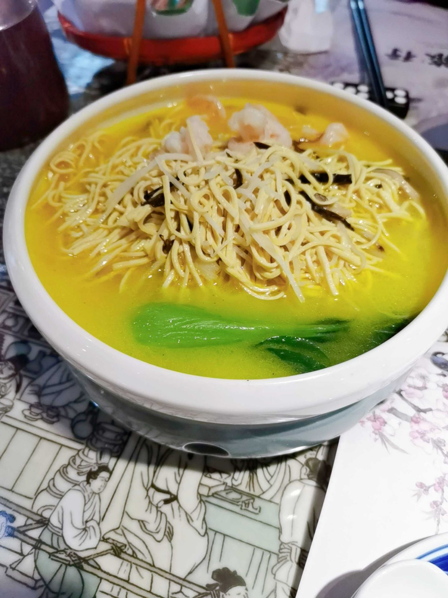 #吃在天津# 向往苏杭之行,爱南方菜 这次打卡这家餐厅,满满的惊喜 【位置】 位置在恒隆广场,会员可以免费停车,交通便利 特别好找的餐厅 【环境】 太美了这家餐厅,早点来可以在小船上吃饭 很有韵味的装修,仿佛在身在南方的小镇 【服务】 服务不错,落座后给了红枣茶和小零食😁 【餐品】 阳春面~虽然是素面,但是味道很不错啊 江南腊味合蒸~汤菜之一,略有一些油腻,里面的腊肉蒸的晶莹剔透,口感QQ的 扬州大煮干丝~这也是一道汤菜,先喝了汤,汤好喝[呲牙]里面还有虾仁和油菜,量超大,下饭也很不错[呲牙] 谁人不识东坡肉~对东坡肉偏执的喜爱,尤其是甜甜的口感,层次分明的肉,晶莹剔透,肥而不腻的肉,停不下来的喜欢吃😁 秘制茴香~第一次吃这个小凉菜,还可以😁 在这里吃饭,菜品颜值高,环境好,下次继续打卡这家餐厅😁