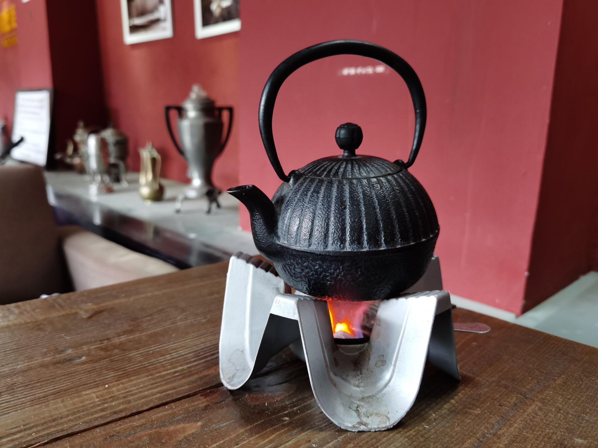 《4000公里一个月环游云南》 说实话对咖啡☕️并没有什么执念,但下雨降温的午后,一壶在面前缓缓炉火煮开的咖啡,还是很温暖的。 现在束河古镇感觉还是比较萧条,路过的店铺大多门可罗雀,不过这家居然快坐满了,看来“中国咖啡鼻祖”的号召力还是很可以的。 招牌|铁壶咖啡^78元单人份,不算便宜,不过比起机器制作,我还是挺享受这种小火慢煨的感觉。咖啡煮制过程中是不会上杯子的,有点耐心,等煮好了,店家自然会送上来,再静置三分钟,就可以享用了。 【环境】店里既是咖啡馆,也是一方小小的纪念馆,上下两层都有座位,貌似老板一个人张罗着,还有三只喵依偎在一起取暖。客人们都挺安静的。 不过洗手间的卫生情况不太理想,如果能改造一下更好。