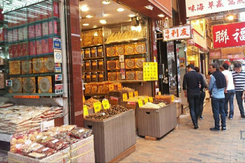 从德辅道绕往文咸西街,老街不长,据说东西文咸街历史上遍布南北行,现在仍以经营海味参茸滋补药材的老字号为主。 叶问晚年在文咸西街开馆授徒还是经营南北行已难寻踪,大隐隐于市,小隐隐于野。 没想到立锥之地库存惊人,滋补一条街果真不是浪得虚名。