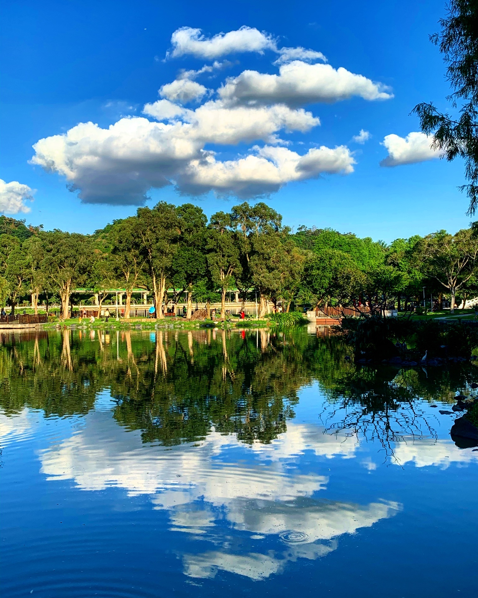 空氣的透明感非常高,致使遠處的鷺鷥山及近處的湖水,因色彩的飽和度高,使得照片形成非常唯美的鏡面...傍晚時分的大湖公園,空氣的透明感非常高,致使遠處的鷺鷥山及近處的湖水,因色彩的飽和度高,使得照片形成非常唯美的鏡面倒影,拍完日景後,坐等接下來的日落景緻。
