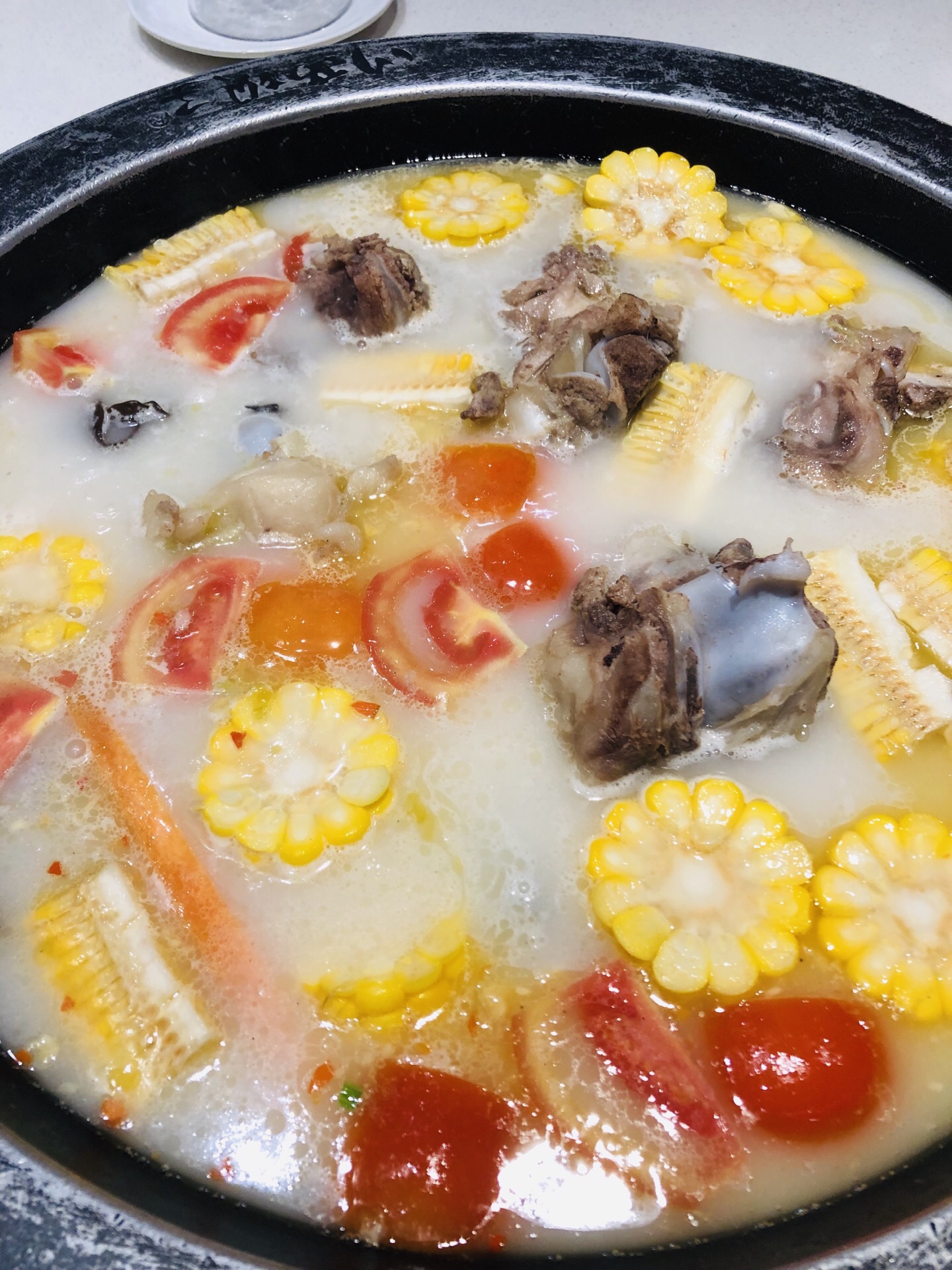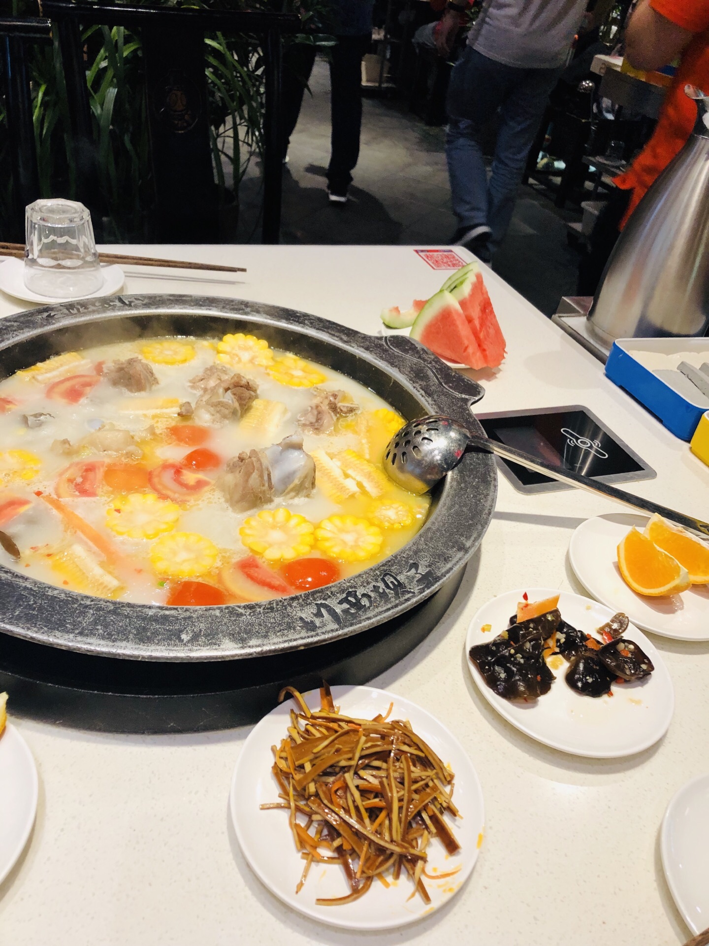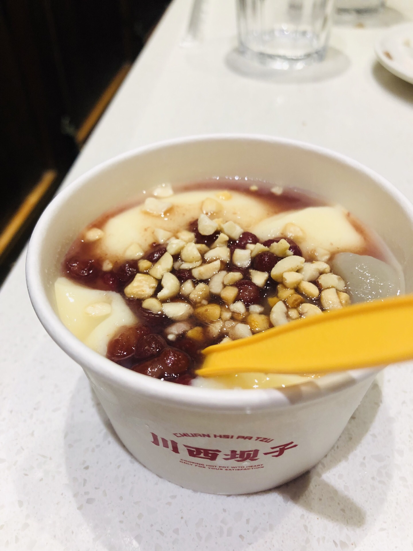 还是第一次来金沙这家店,环境好,服务好,川西坝子服务确实还可以,他们家的骨头汤锅还安逸,棒子骨5打5坨,就是没炖耙,耙和点更好吃,汤锅里配得有玉米,胡萝卜条,自己加点其他菜还是够了,甜豆花是川西坝子每人送的一份