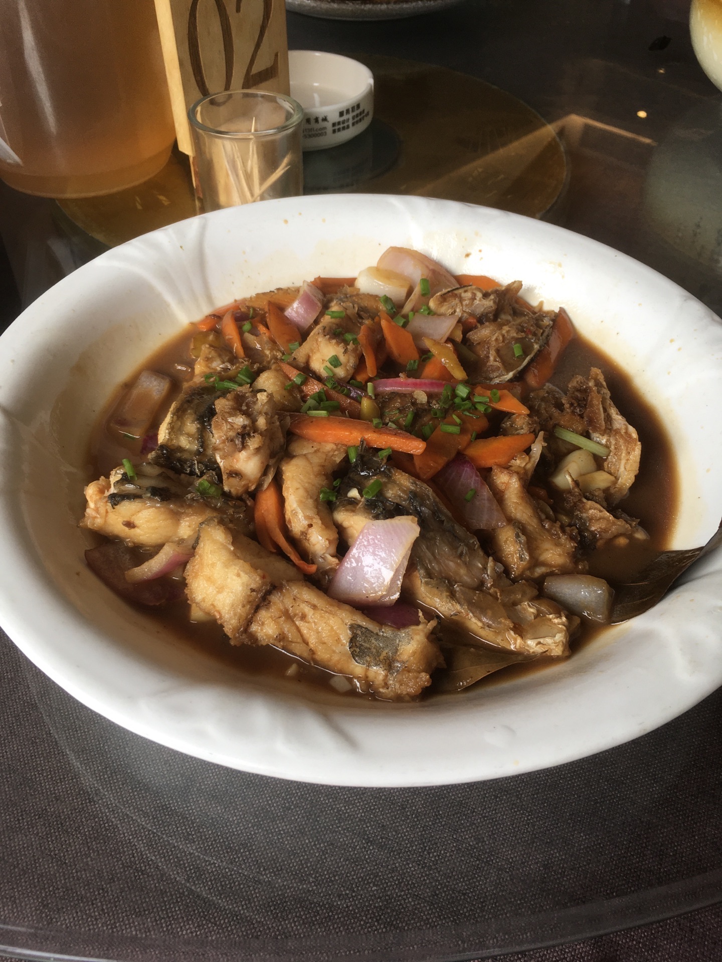 武夷山旅游,12点半要去九曲溪漂流,从天游峰坐景区交通車,正好饭点下車就看九曲食坊,四位大人、一位小女孩,点了三菜一汤的套装, 【口味】红菇豆腐排骨汤,红烧鱼、野菜,木耳菜。 【环境】装饰一新! 【服务】好!