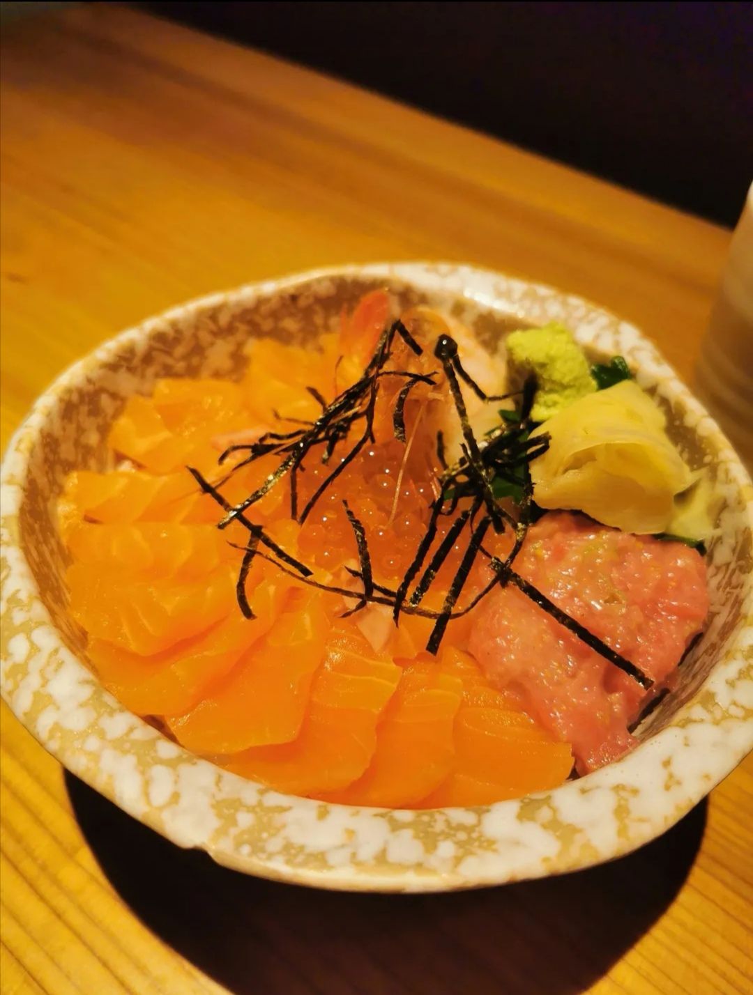 酒吞,在吃日料的名单里,他家始终是排在前三位的。 他家的食材真的很新鲜,服务也非常棒,提前电话预订了工作日的午餐座位,电话预约时,接线员可以直接报出来电人的准确信息(以前光顾过),还是让人感觉蛮亲切的。 黑椒牛舌,牛舌烤得不老不嫩,一点咸味刚刚好,吃起来香香的,蛮好吃。 中午的午餐定时性价比很高,168的生鱼片套餐,三文鱼很新鲜,吃起来糯糯的,还带着那么一点甜味。 套餐里面还有色拉,蒸蛋和味增汤,一趟下来,保准吃得饱饱的。 这几年日料餐厅竞争那么激烈,酒吞一直以它的好品质和高人气,妥妥地存在,也是超厉害的了。