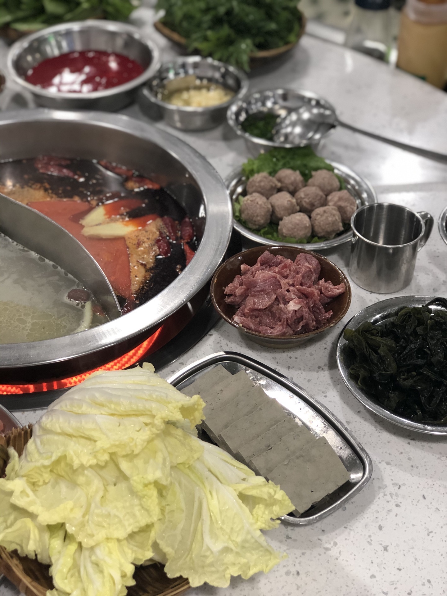 天热也要吃火锅! 天天都在排队的电台巷我终于吃到了! 所有食材都来自于成都 果然这个锅底就是那个四川辣味,辣到流眼泪也要吃,因为实在太好吃了 他们家的菜都是小蝶菜,两个人吃不怕会点太多,分量就刚刚好 鲜鸭血、香菜圆子、冰粉、10秒毛肚、虾滑、火锅牛排是他们家招牌点起来! 几道菜下来都觉得好有特色 快约上你的小伙伴来感受一下吧 店名:电台巷 地址:SM二期5楼