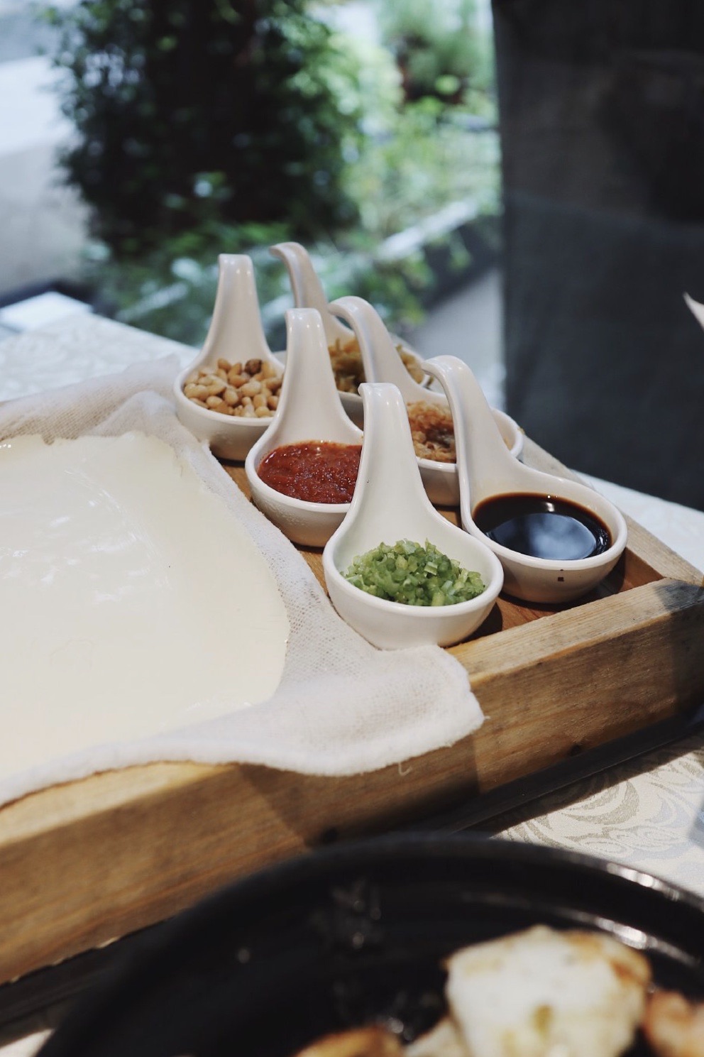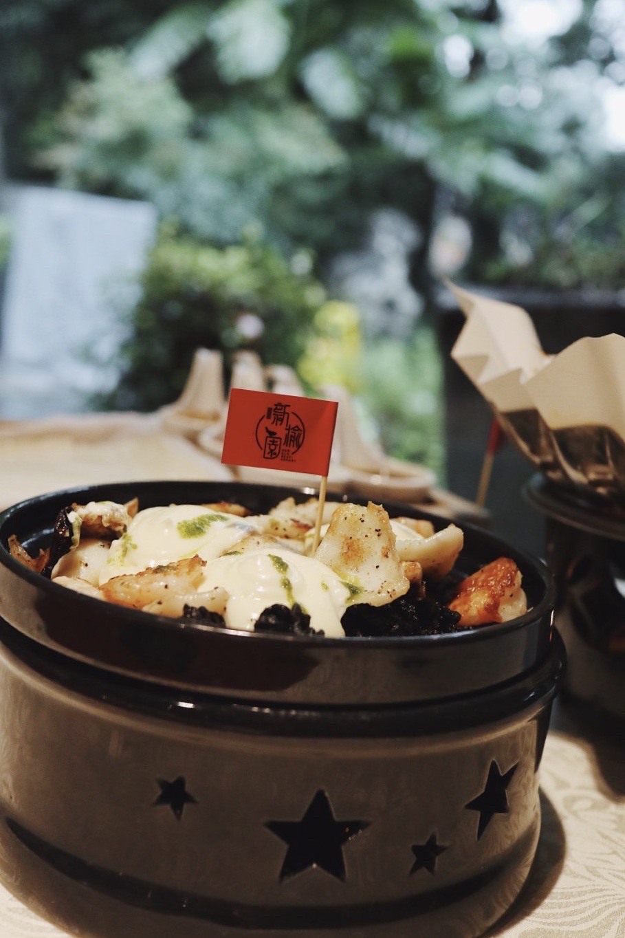 下着小雨的满觉陇,一颗颗水珠顺着枝叶淌下,连空气都变得湿漉漉。 白白嫩嫩的现磨豆腐,边上搭配着香葱、榨菜、酱油等,可以根据自己的口味做一碗咸口豆腐脑。 椰香咖喱虾新鲜大只,有了椰浆的加入,咖喱味道更香浓。 西班牙墨鱼饭里放着许多虾仁和墨鱼,关键芝士也特别足,喜欢底下脆脆的锅巴。