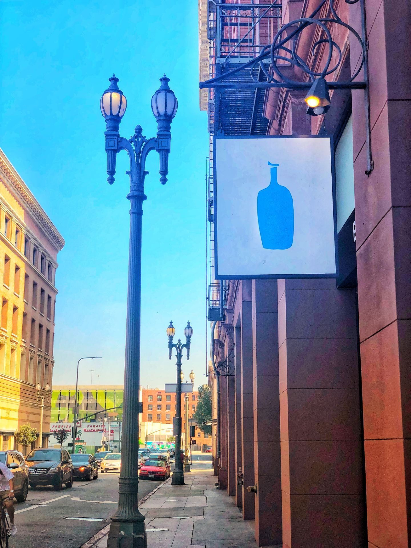 成立于2002年,诞生于美国西岸。在所有门店都以简单的蓝色瓶子作为图案,甚至连“Coffee”的字眼都没有。 蓝瓶子是精品咖啡的代表之一。他们抛弃花样回归原始,根据咖啡豆的属性来进行不同的烘焙和冲煮方式。对于咖啡的冲煮方式颇有讲究。据说他们只贩售48小时以内生产的咖啡,因为从烘焙机烘出来的咖啡豆,在48小时内芳香会达到顶峰。 我点了一杯冰美式,冰凉带着微酸的咖啡让精神为之一振,小伙伴点了一杯冰拿铁,据说奶味很浓郁,口感很有层次✌🏻。