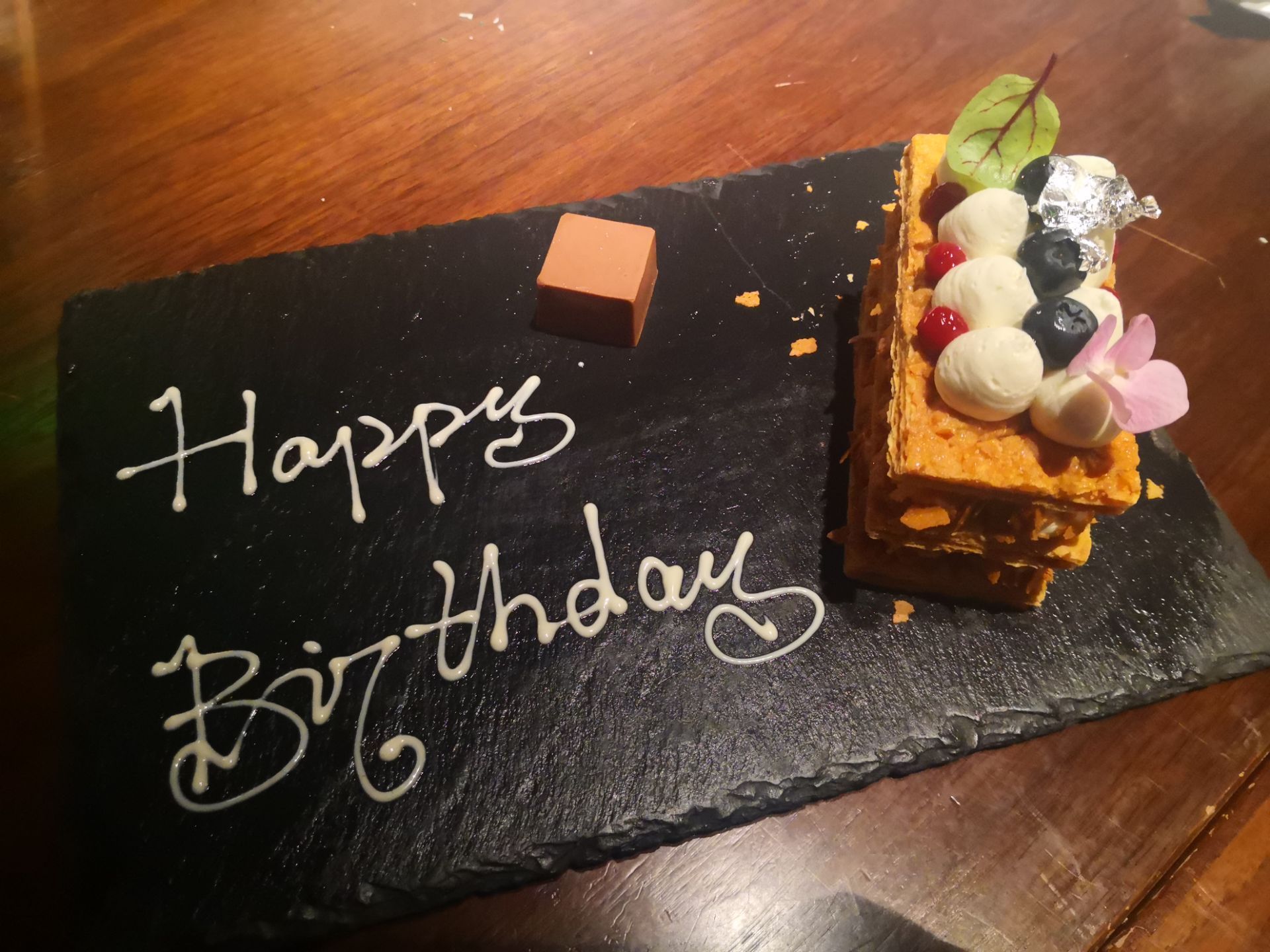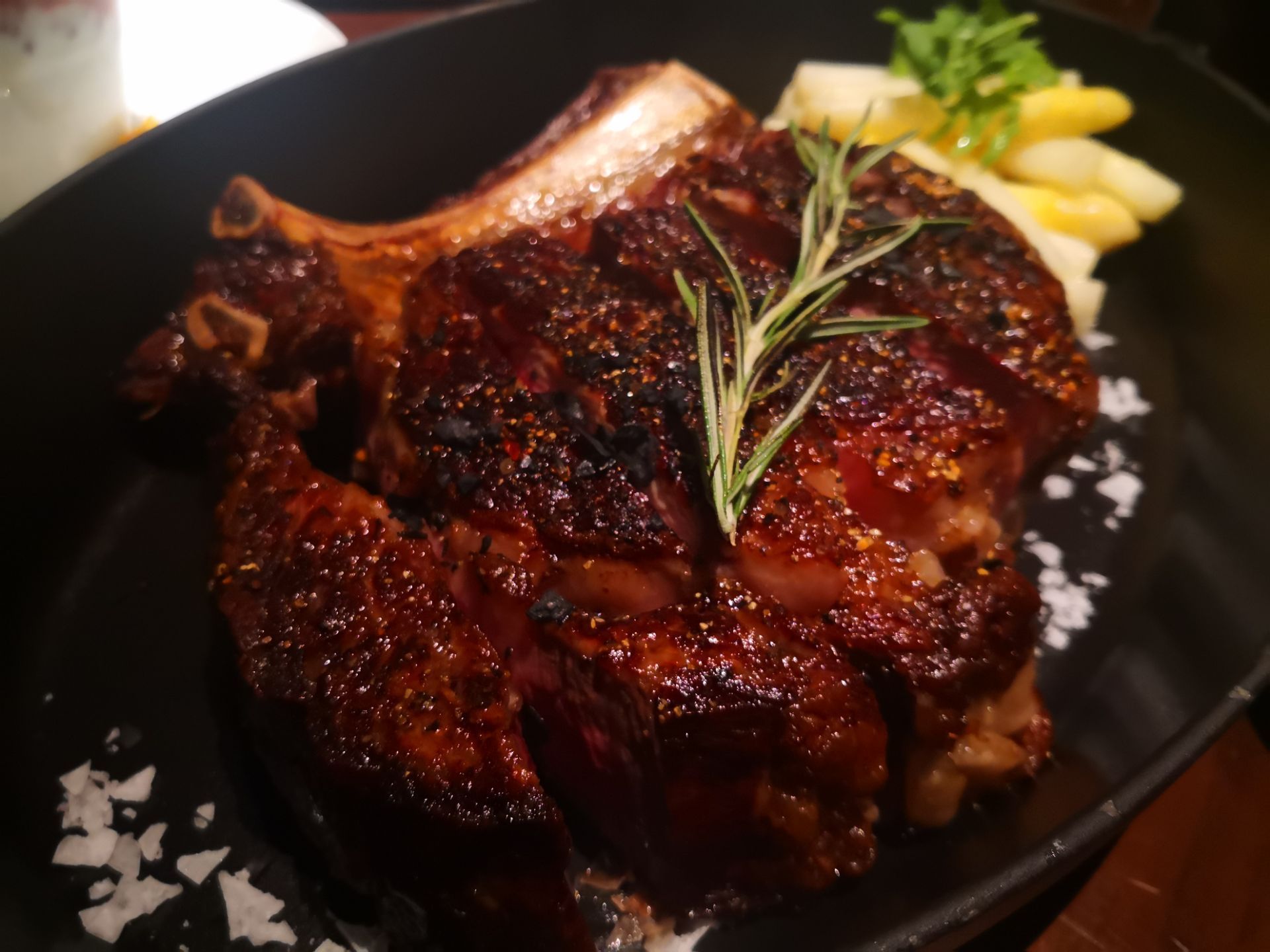 生日来言盐西餐厅打卡吃牛排,点了1Kg的美国的带骨肉眼,价格相对便宜一点,没有喝酒,主要是因为开车不方便,送了一个拿破仑蛋糕,甜点这家很推荐炖蛋,牛排价格真的不便宜,带骨肉眼1198元一份,其他就点了些前菜,绝对是吃得饱的