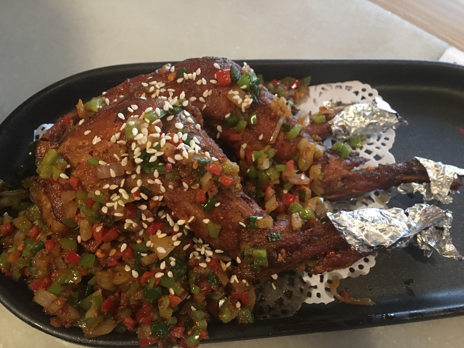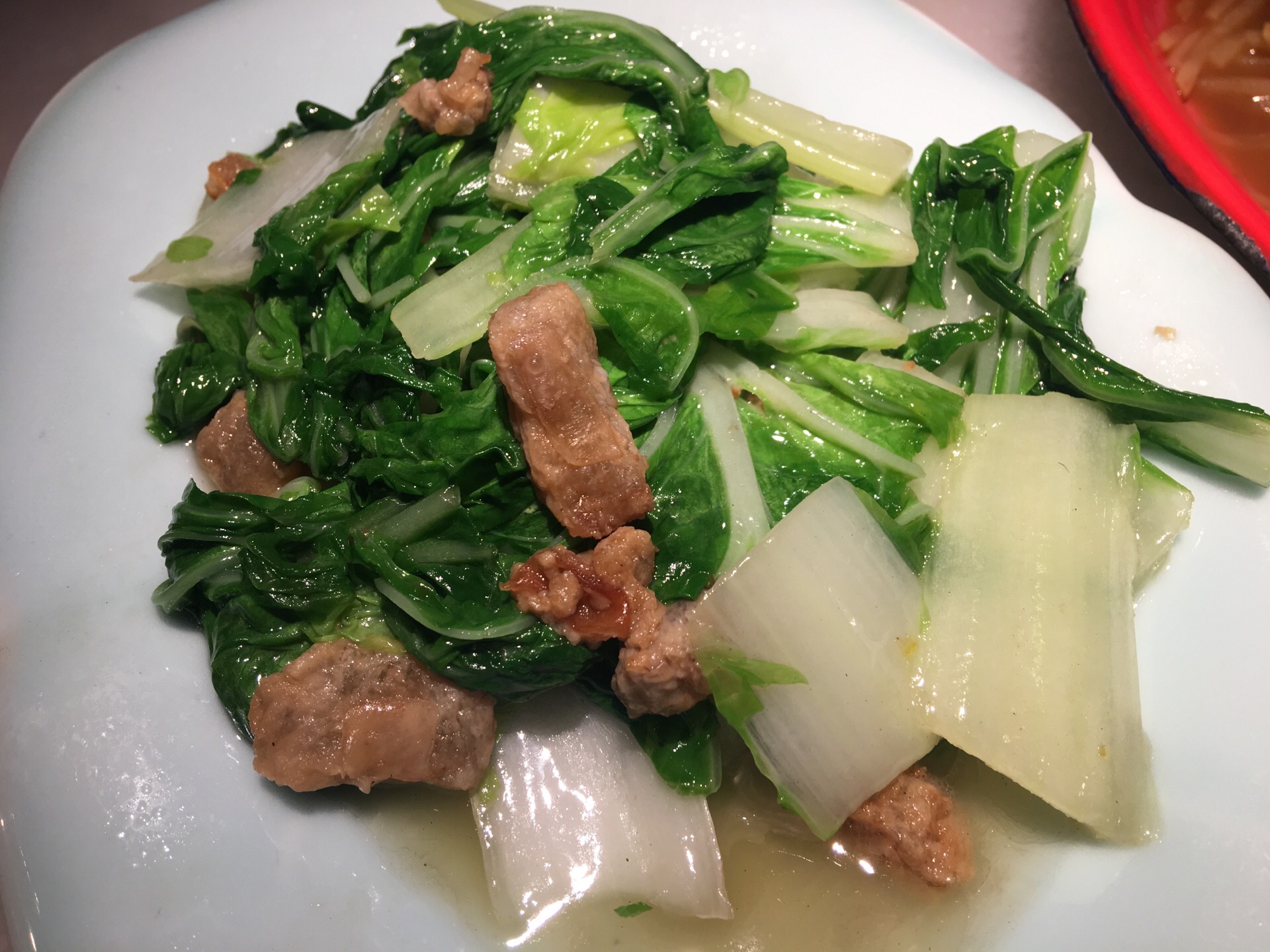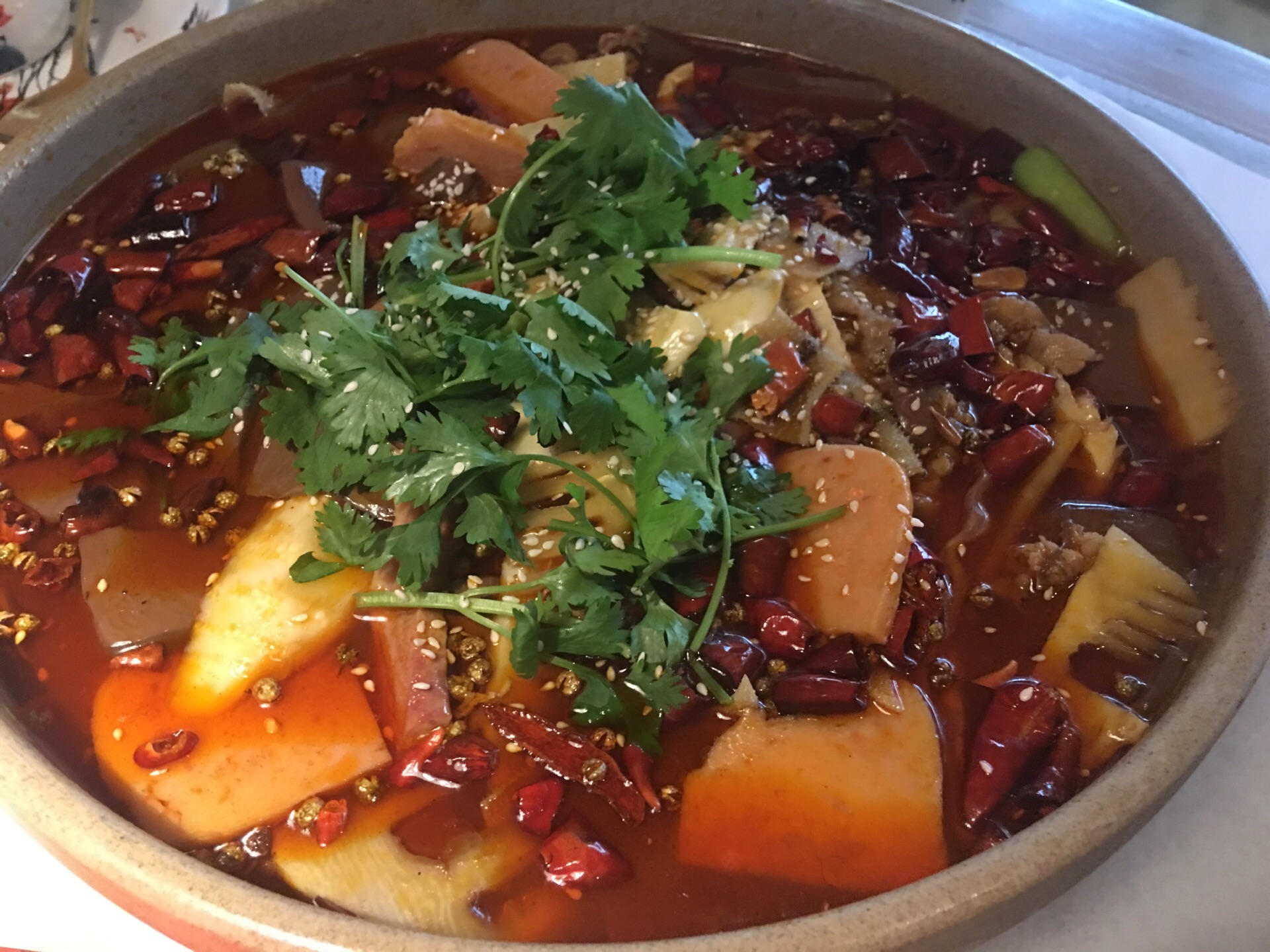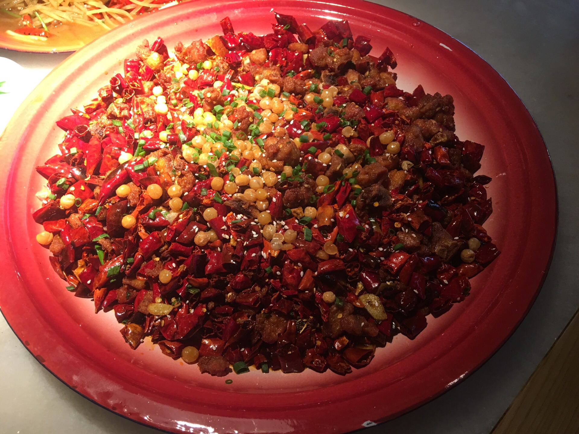 以前来这家店的时候每次都是人气爆满,如今受疫情影响生意看上去也不是很好,店内的人流量不多。 离家三四站路的距离,挺近的。下班顺路弯过去吃个晚饭。 平台团购的99套餐,性价比超好。包括了辣子鸡毛血旺土豆丝白菜和3碗米饭。辣子鸡真得是超大一个盘子,毛血旺的量也是杠杠的,味道还是一如既往,不过价格似乎比以前有略微的上浮。另外点的除了那个豆腐的汤汁有点偏咸外,其他像兔腿猪脚咸蛋黄锅巴都不错。