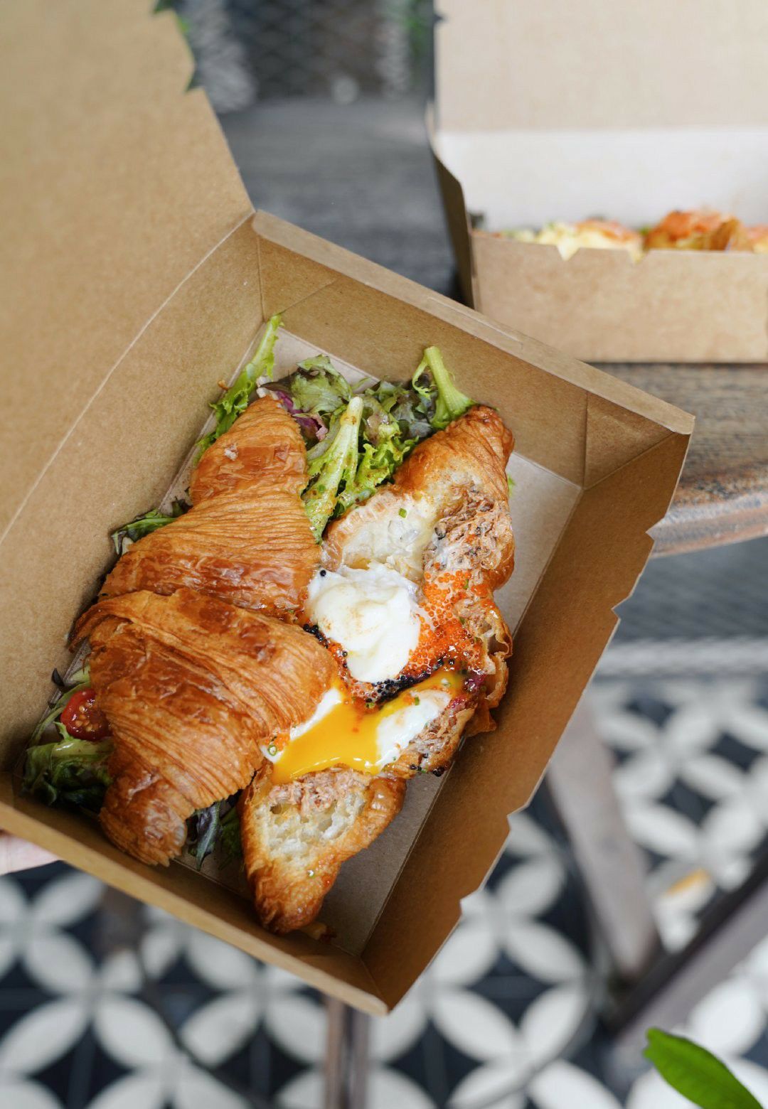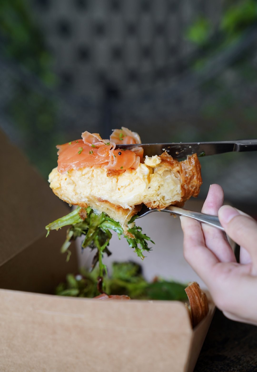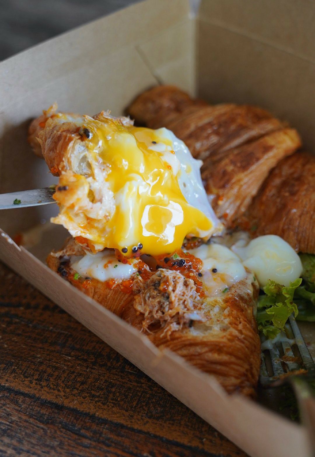sᴘɪᴄʏ ᴄʀᴀʙ ᴇɢɢs ʙᴇɴᴇᴅɪᴄᴛ 64度温泉蛋太惊艳!吹弹可破的质感,拌上烟熏辣椒,蛋黄酱和味增荷兰汁,浑然一体的神仙酱料。 辣味蟹肉泥厚得很满足,蟹籽鱼籽丰富口感,全部搅到一起,夹在金黄酥脆的可颂里,称得上“滑”进嘴里 咸鲜带一丝微妙的辣,绝了。 sᴍᴏᴋᴇᴅ sᴀʟᴍᴏɴ ᴄʀᴏɪssᴀɴᴛ 还是标致的可颂,酥到掉渣,浓郁的黄油香气,连吃两份都不腻。滑蛋加上车打和gruyere芝士,不仅甜嫩也非常creamy,滑嫩而肥美的烟熏三文鱼,是想念的味道啊。