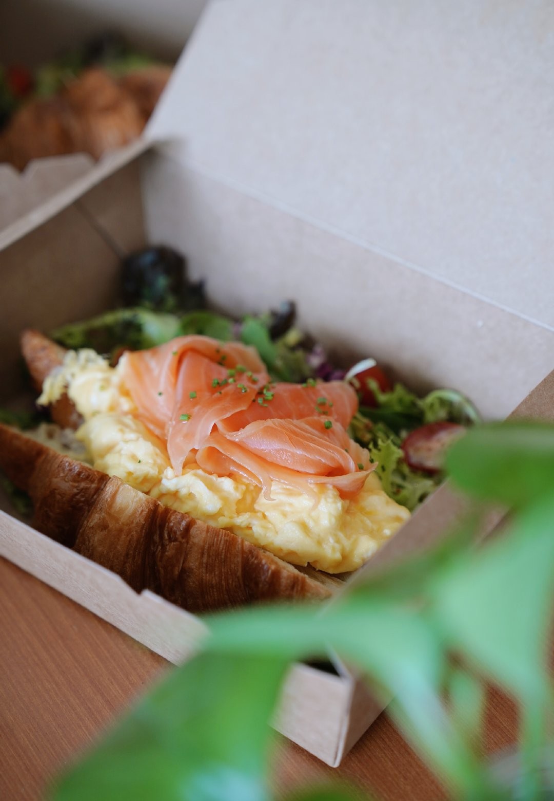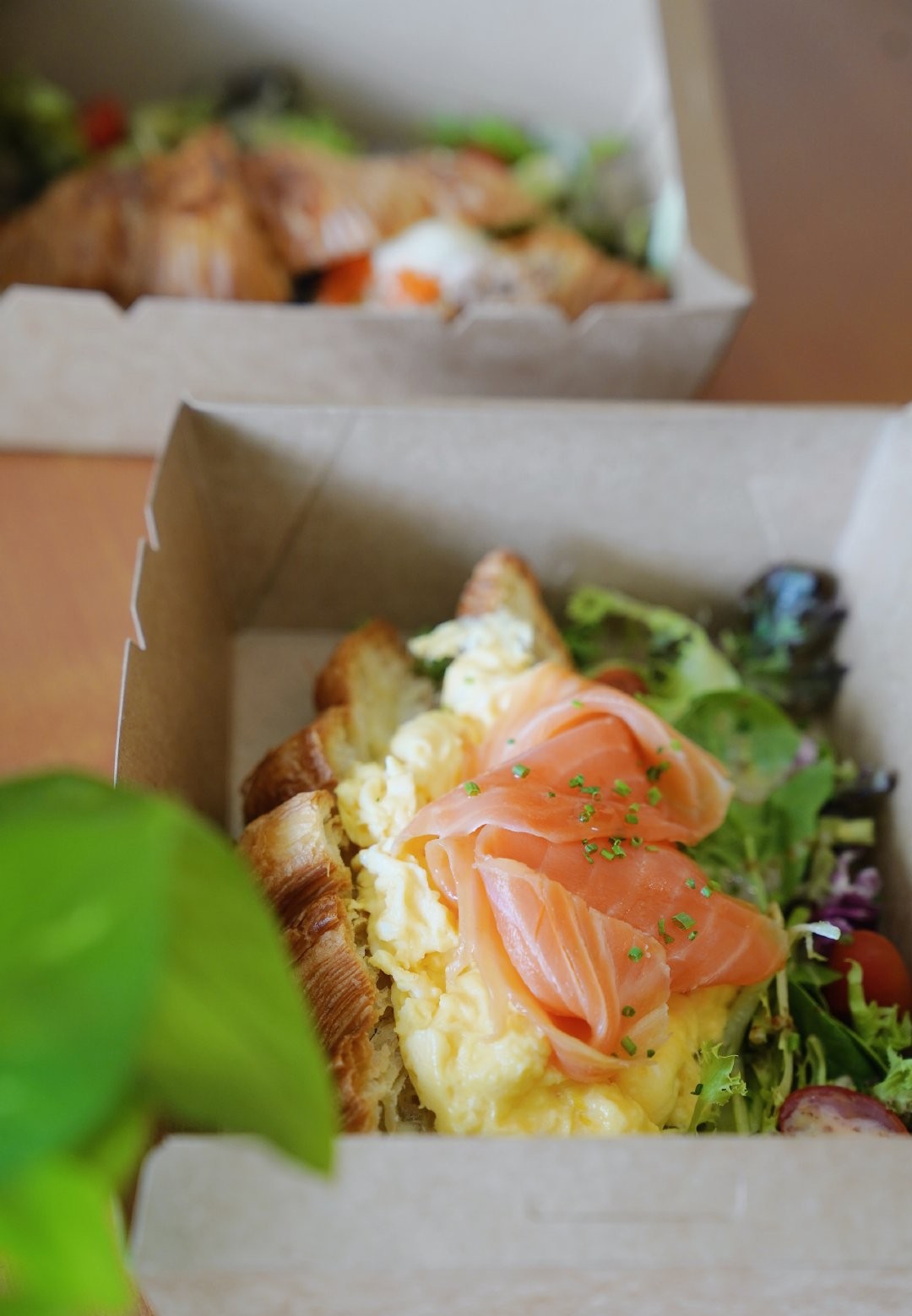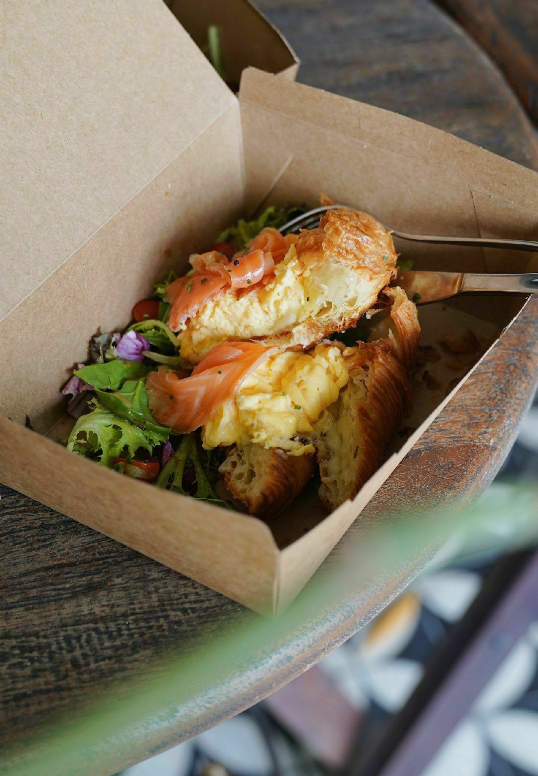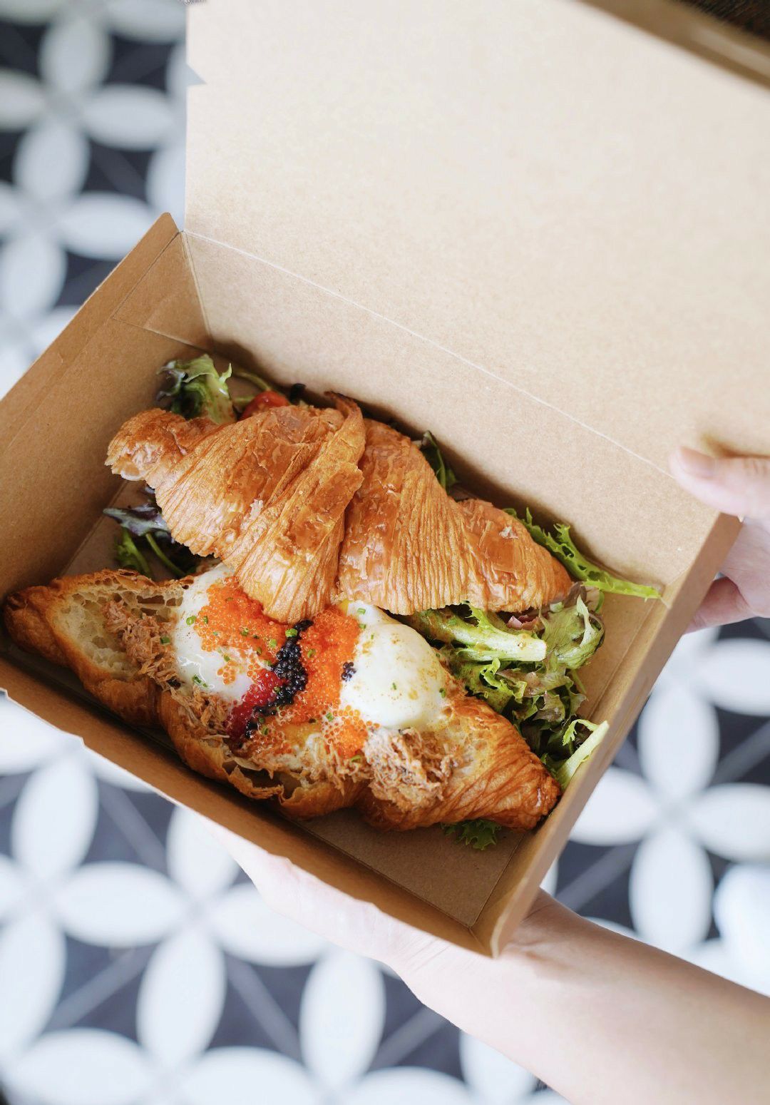sᴘɪᴄʏ ᴄʀᴀʙ ᴇɢɢs ʙᴇɴᴇᴅɪᴄᴛ 64度温泉蛋太惊艳!吹弹可破的质感,拌上烟熏辣椒,蛋黄酱和味增荷兰汁,浑然一体的神仙酱料。 辣味蟹肉泥厚得很满足,蟹籽鱼籽丰富口感,全部搅到一起,夹在金黄酥脆的可颂里,称得上“滑”进嘴里 咸鲜带一丝微妙的辣,绝了。 sᴍᴏᴋᴇᴅ sᴀʟᴍᴏɴ ᴄʀᴏɪssᴀɴᴛ 还是标致的可颂,酥到掉渣,浓郁的黄油香气,连吃两份都不腻。滑蛋加上车打和gruyere芝士,不仅甜嫩也非常creamy,滑嫩而肥美的烟熏三文鱼,是想念的味道啊。