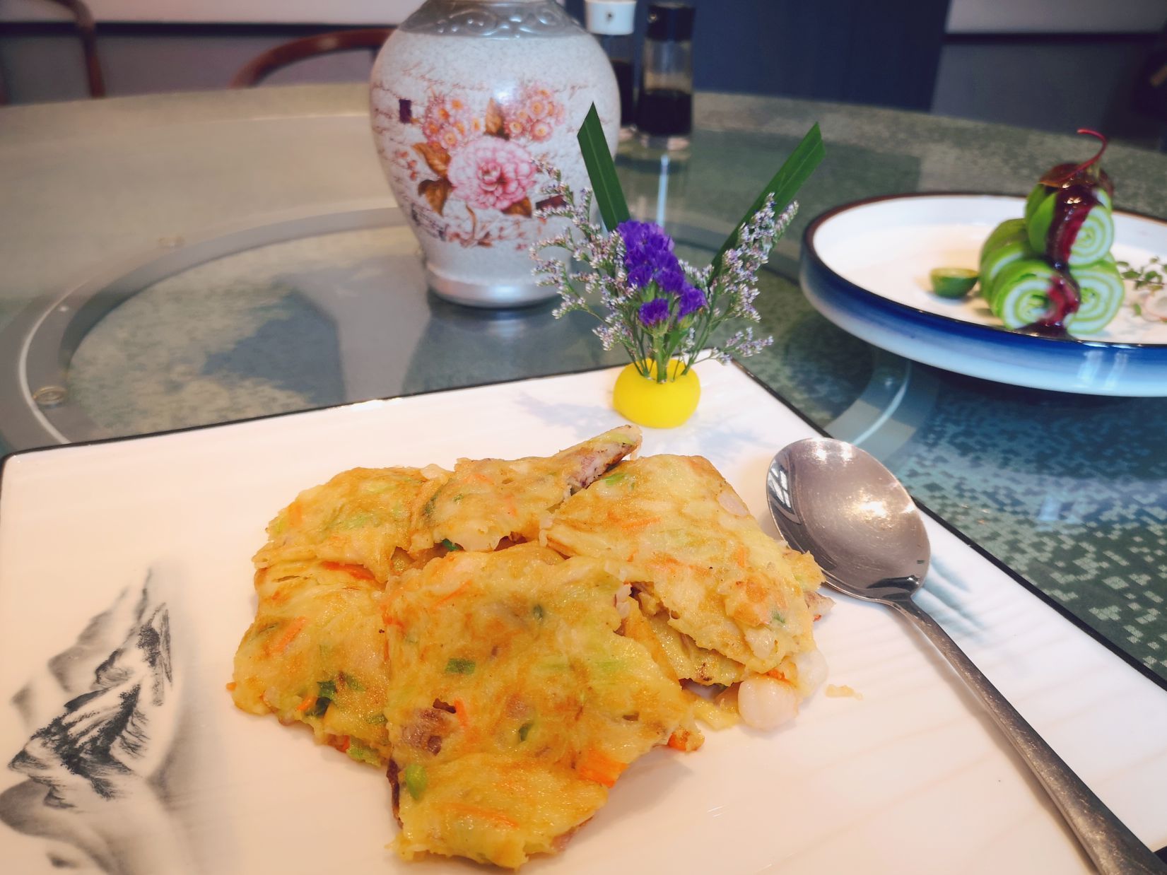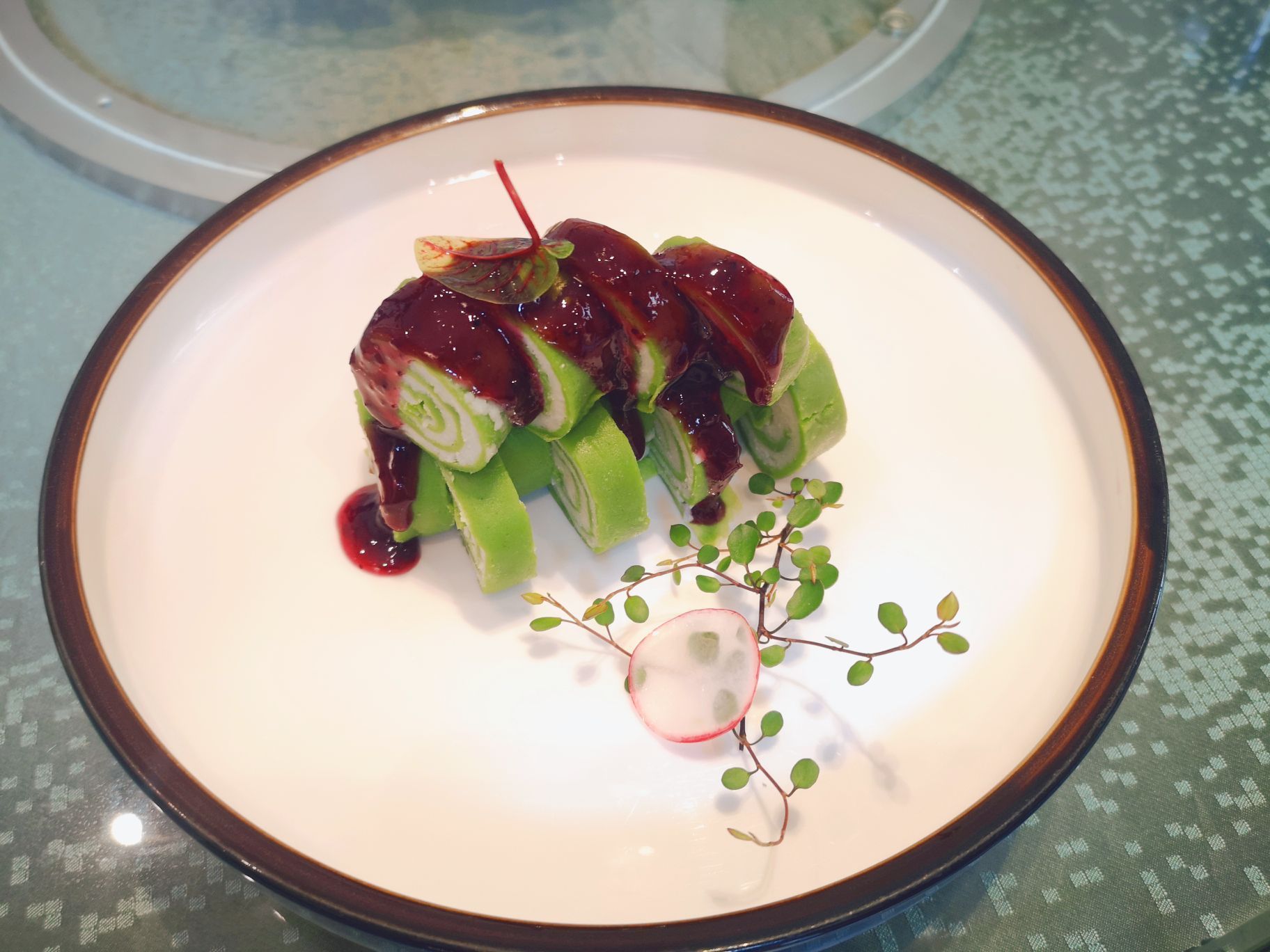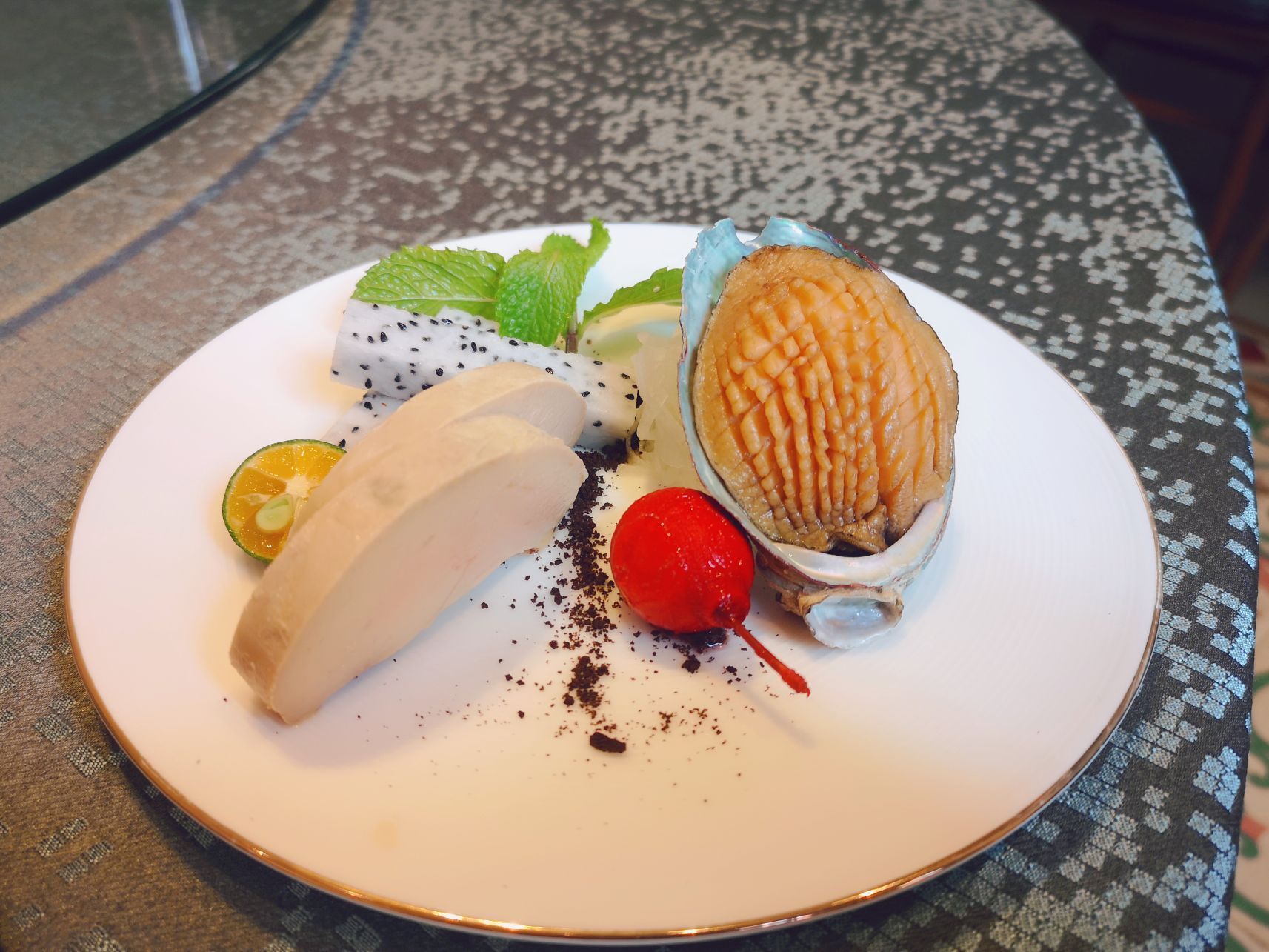 装修很有年代感的一家私房菜,刚进门的小庭院很吸引眼球,在这里共进晚餐蛮有情调~ 第一道上的是蓝莓山药卷,糯糯的卷混合淋着的蓝莓酱,精致好吃。 接下来的上的是我最爱的一道菜。味淋蓝日鲍配樱桃鹅肝,很好听的名字。其实在这之前我本身对鹅肝比较无感的,但是他们家的让我对鹅肝有了新的认识。很浓厚的香味在嘴里化开,青柠根据个人口味来加,一点也不会有腻的感觉[调皮] 其他菜品也都很好的体验,点心有很可爱的兔兔和小造型,海鲜艇仔粥料真的超级足!