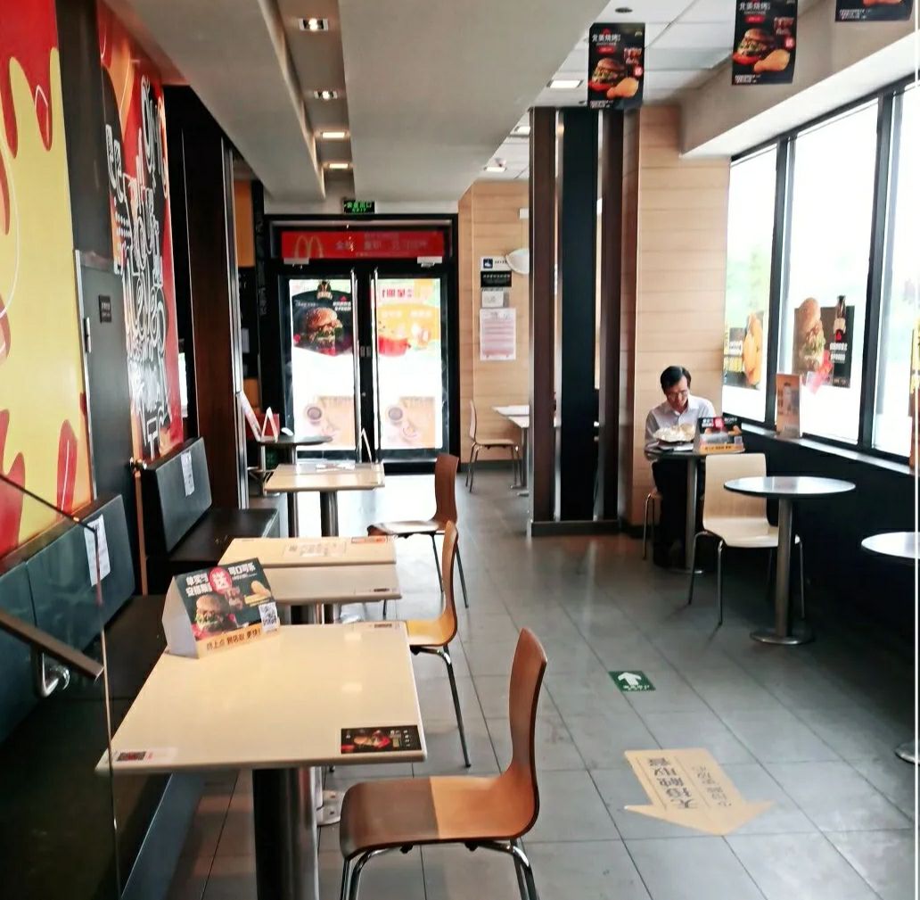 店里很少有人堂食 大部分都是带走 也有就近来M记谈事的 总体来说还是很安全 用餐周围两米都没人...