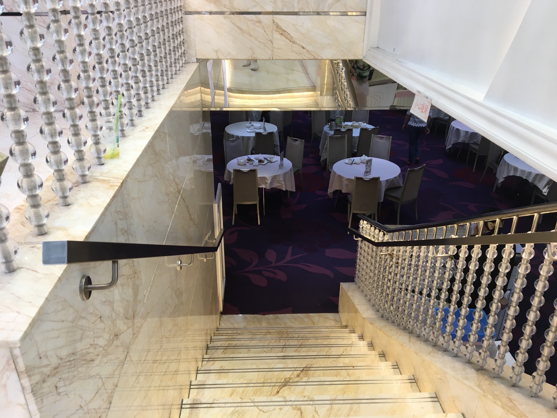柯士甸道龙堡酒店的这一家富临酒家叫做富临皇宫皇室1号店,光是听店名和别的富临酒家就不同,装修也相当的上档次,楼梯和墙壁全部都是大理石的,华丽丽的非常适合举办婚宴的那一种。我是来吃的早茶点心,总体来说,环境要大于味道,光就小笼的点心水准来说,这个虾饺的质量就比稻香和美心皇宫要差那么一些些了。