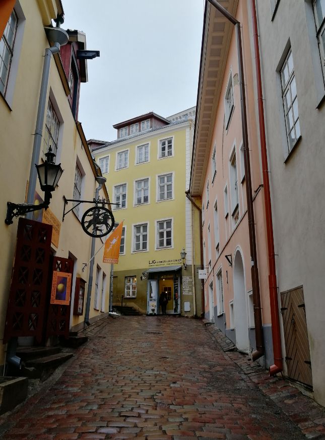这里比较狭窄,而且有一些陡峭,街道是石板小路,穿过这街道可以到达塔林老城区的最高点看城区的景色