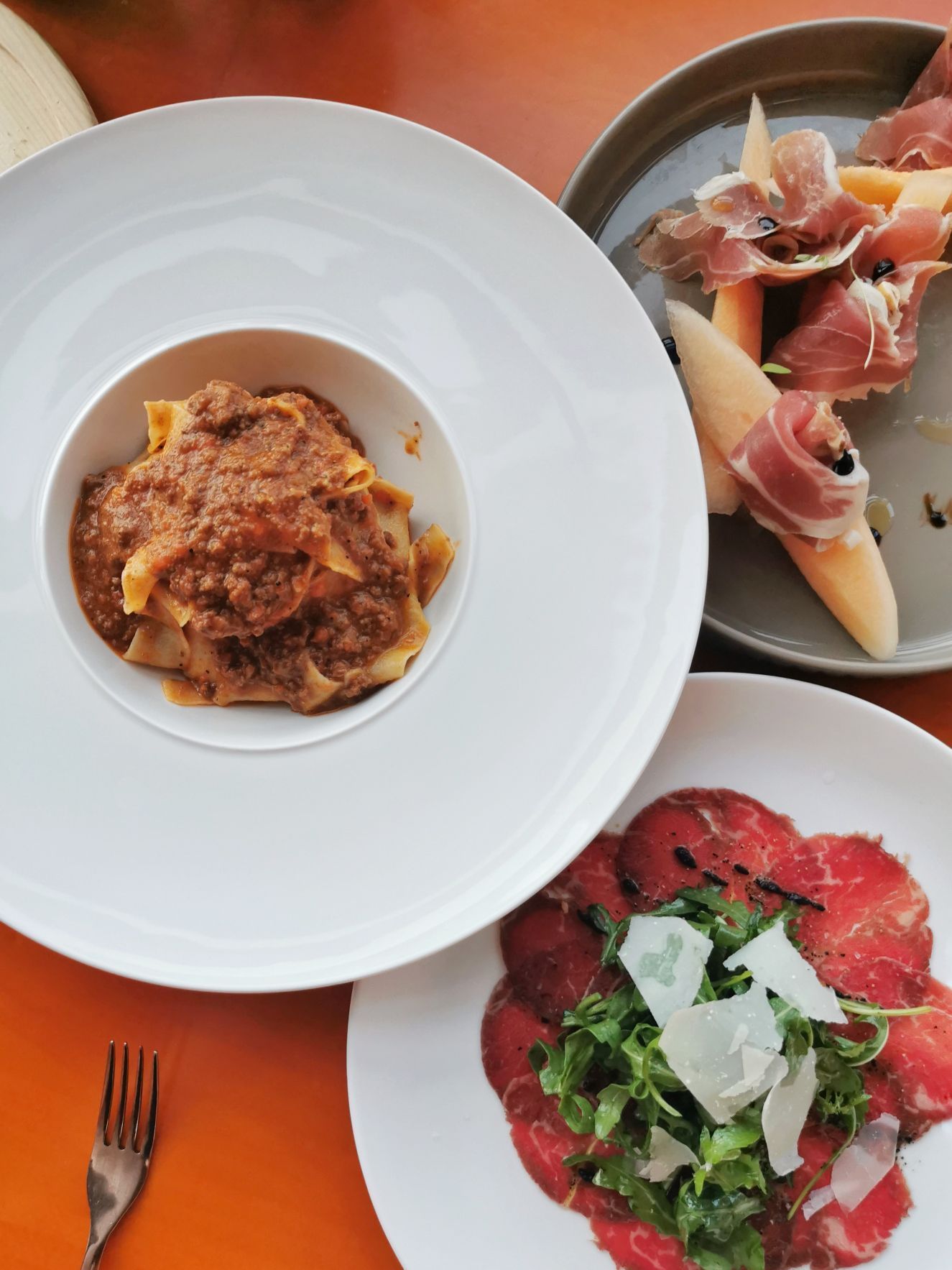 最近很想吃意大利菜,正好约了朋友在浦东,找了好久找到这家餐厅,看着食物正宗价格又合理,果然没有失望 环境很好,人不算多,服务也很周到 菜和酒都很好喝,喝了一杯rojia,推荐: 餐前面包:很有特色,松软,直接蘸橄榄油吃感觉非常意式了 米兰主厨特色烩饭配牛骨髓:有特色 番茄肉酱配宽面:简单的一道菜,考验水准,面口感劲道也很挂汁 海鲈鱼:烤得鲜嫩,配上茄子番茄酱口感不错 两个人要撑死了,不过吃的很爽哈哈哈