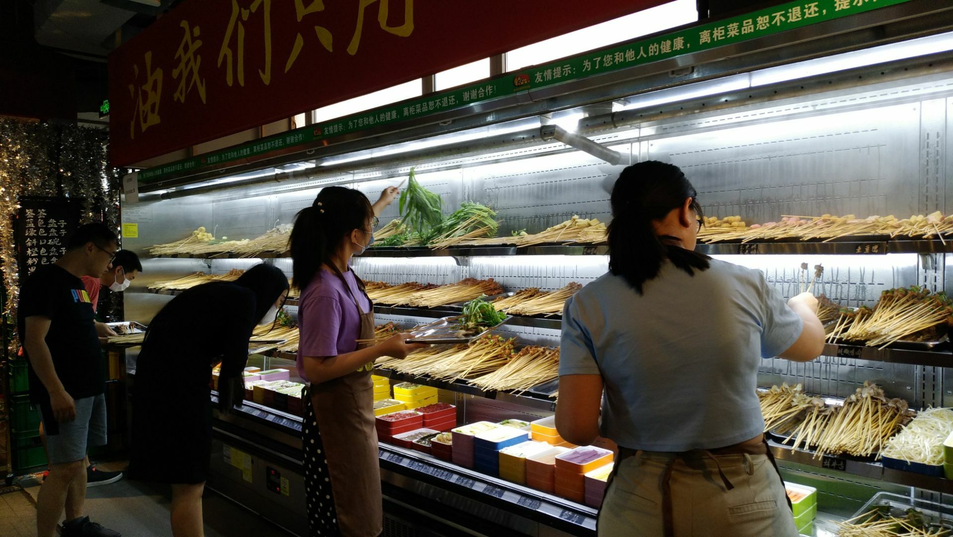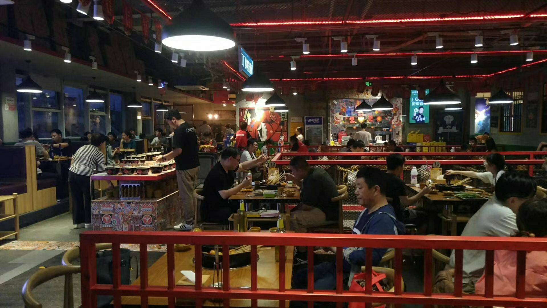 走路活动活动身体,路过某串串香店,记得有一张这家店的五折卡,本着勤俭节约不浪费的精神,吃它一顿[偷笑]。酒过三巡菜过五味,突然又记起五折卡有限制,不能在周末使用[流泪], 汤底味道不错,串串的品种不算很多,所有的牛肉都不好,嫩肉粉多了的感觉,没有牛肉的味道。 每桌距离很近很近,跟拼桌的感觉似的,空调不给力,超级热,热,热!