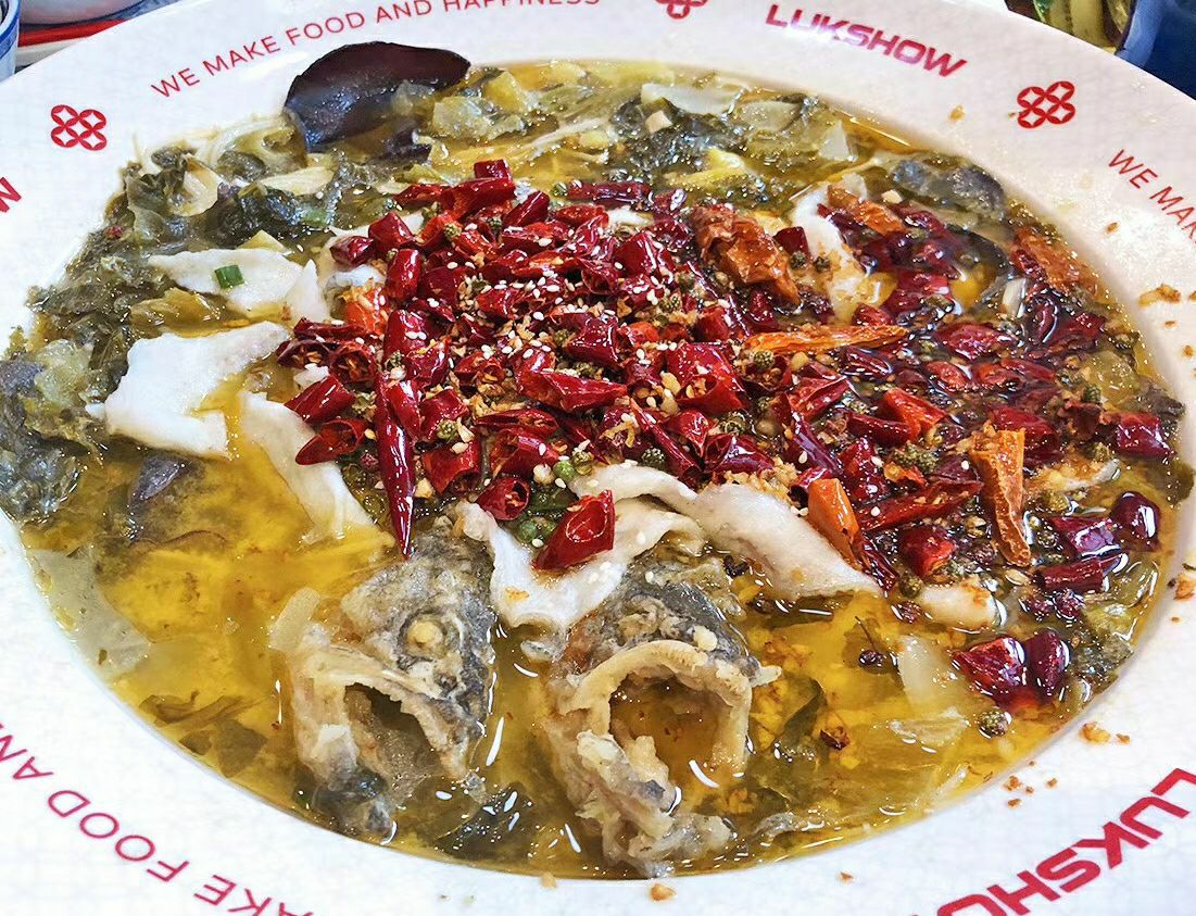 禄鼎记(侨鑫店)位于金穗路侨鑫国际商场二楼,地理位置不错,交通便利。 这家餐厅店面较大,装修的古色古香。出品主打川菜。 酸菜鱼就有多种口味,蒜蓉口味的鱼片嫩滑无骨,蒜蓉味道浓香。麻辣口味的辣得过瘾。 香辣虾 大虾很新鲜,炸的酥脆,。