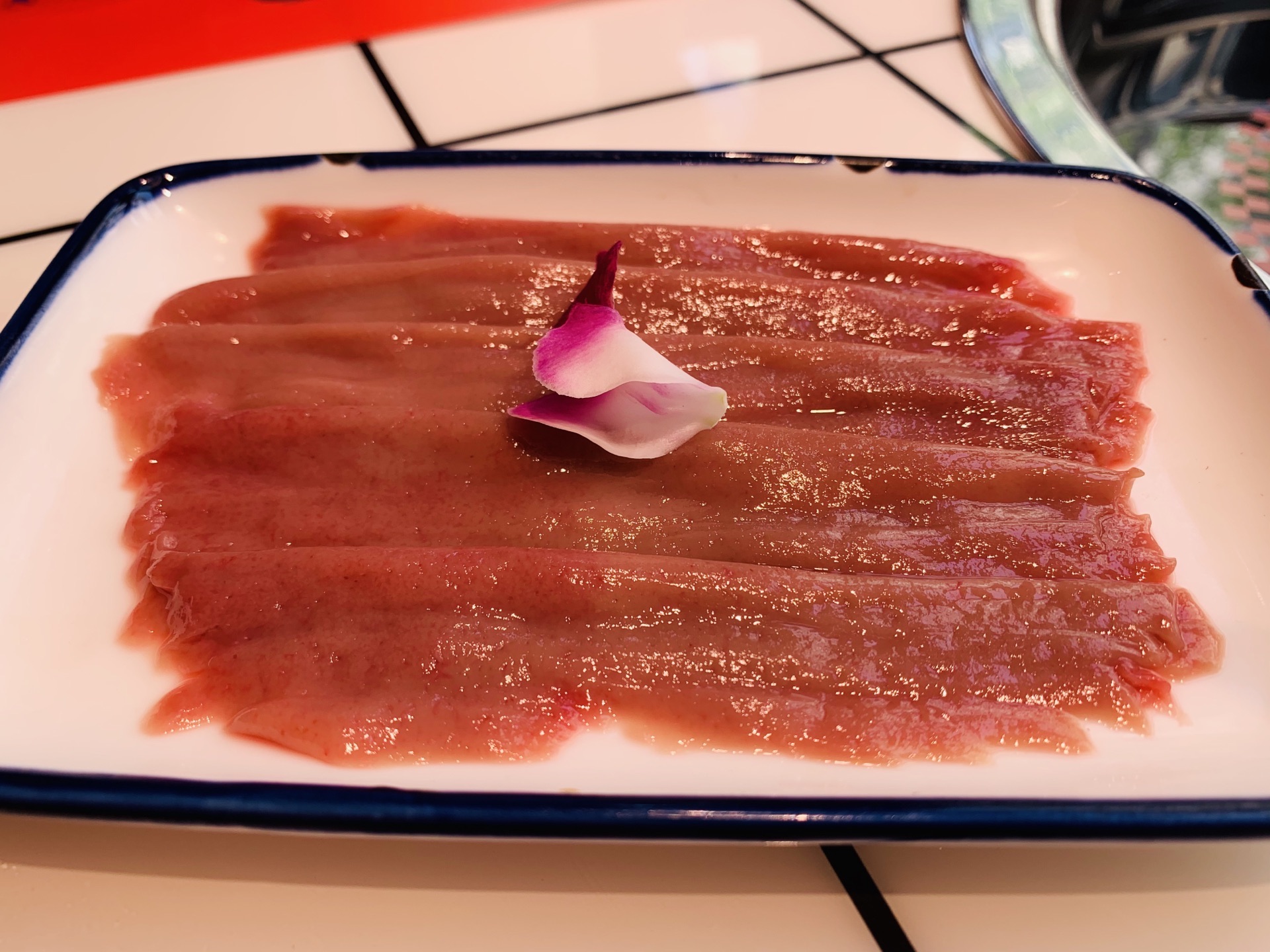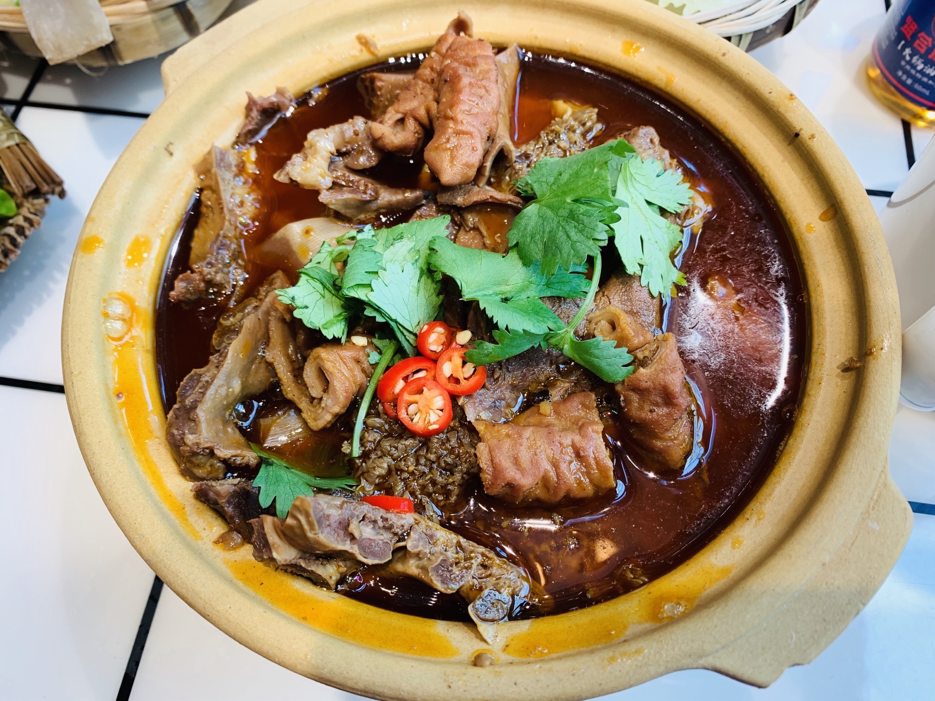 才没多少天又来这里吃了一顿,对于不想排长队吃的朋友可以选择在中午11点左右到。这时候是肯定不需要排队的,晚上要赶在五点前到,这样就可以避免排队了,店面有两层还算是比较大的,只是店里边可能通风不好,火锅的味道太大了,每次吃完以后身上总是有一股很浓的味道,很长时间还散不去,服务员的态度不错,一碗牛杂这道菜是这家店的招牌,点的人也非常的多,感觉是每桌都会有的,小小的一份,但是里面的料还是挺多的,味道很不错,一定要趁热吃,凉了之后会有一股怪味,对于爱吃牛杂的我来说,很快就解决了一份,番茄鸳鸯锅怕辣锅的味道太大了,就选择了番茄鸳鸯锅,中间小的锅是选用的番茄,大刀腰片切的非常薄,稍微涮一下就可以吃了,绿色脆毛肚不需要涮很久,控制在八秒到十秒之间,这时候的味道是最棒的,吃起来有一点脆脆的感觉,广味小香肠煮的时间长一点的话,小香肠会变胖,而且这时候味道也会更好吃,比较适合煮在番茄锅里面,会有一股酸酸甜甜的口感,鸭血土豆片笤粉藕片这些都是吃火锅都会点的一些菜,都是小盆装的,可以多点一点,价格不贵,主要量都不是很大,可以多样选择