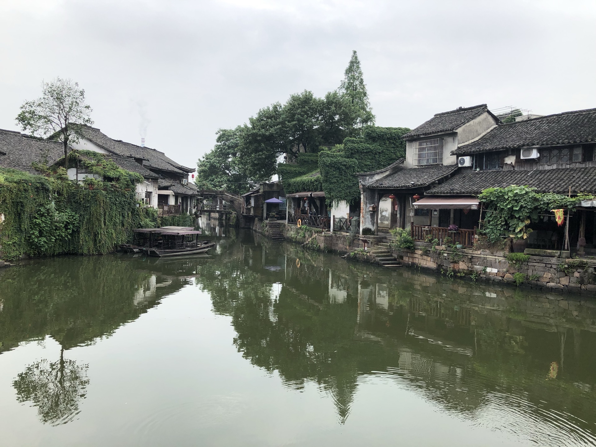 ...镇都差不多啦,小桥流水两边老旧房屋,小店、茶馆,但这里流水两边好像没有看见饭馆,这干净整洁许多