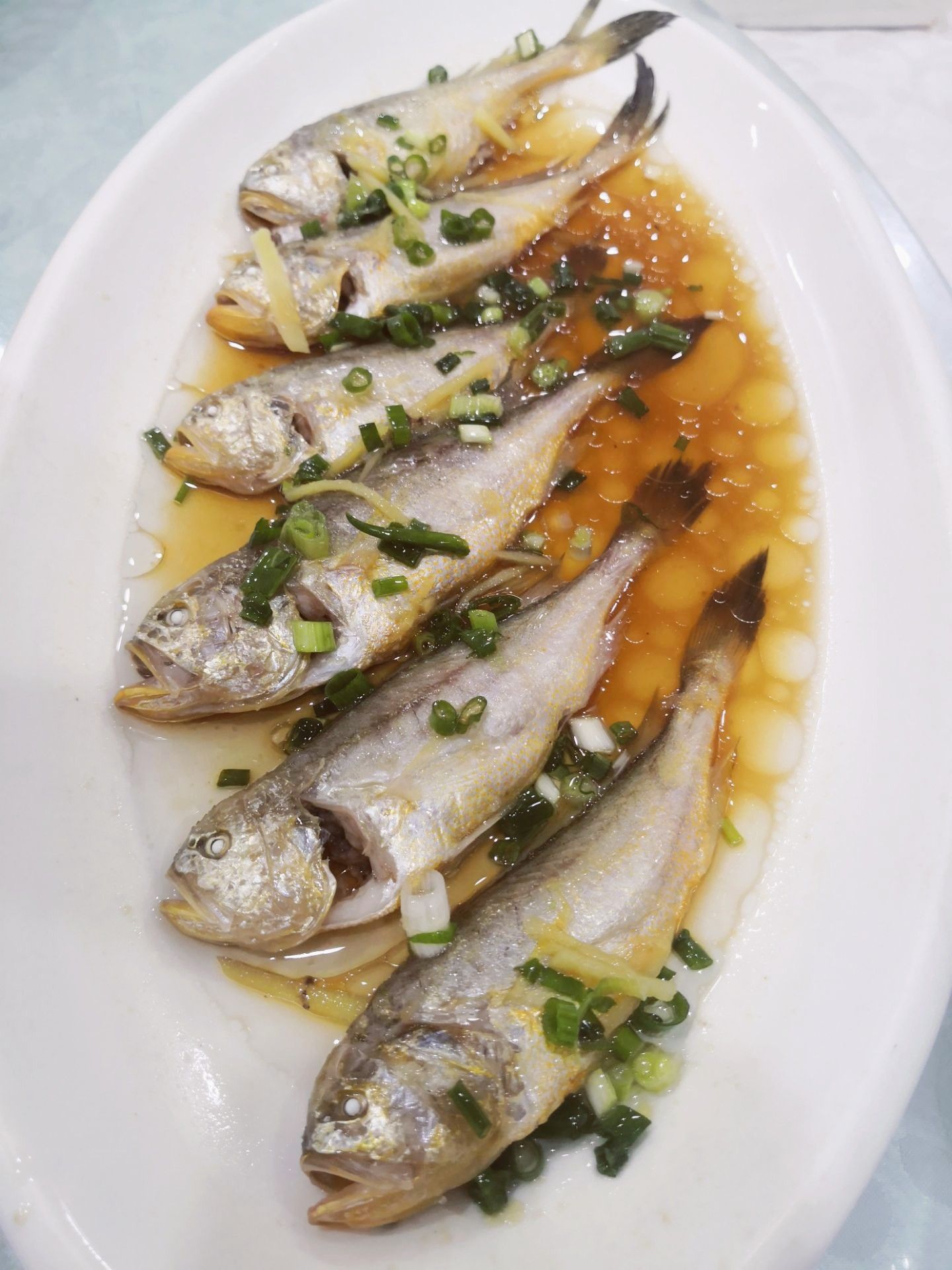 疫情期间想着出去逛逛,就驱车到了两小时外的平湖乍浦,本来想在九龙山玩玩,到了才发现景区什么的都没开门,只能进城觅食。小城里的店选择不多,网上找到这家排名还比较靠前就决定去尝尝。 这家店名为老国营饭店,到底是不是国营的,咱也不知道,反正店面说超级小,我们在它门前走了三遍,愣是没看到。店内部还是比较宽敞的,我们两大一小点了银鱼羹,贝类的拼盘,荷兰豆炒山药,炒粉丝和鲻鱼,点完菜发现店里有新到的小梅鱼。正是吃小梅鱼的时节,我们又加点了一份小梅鱼。小梅鱼果然不负所望,肉质细腻鲜滑,非常新鲜。相比较而言鲻鱼的肉就有点粗糙了。银鱼羹我家小朋友非常喜欢,一口气吃了好几碗。