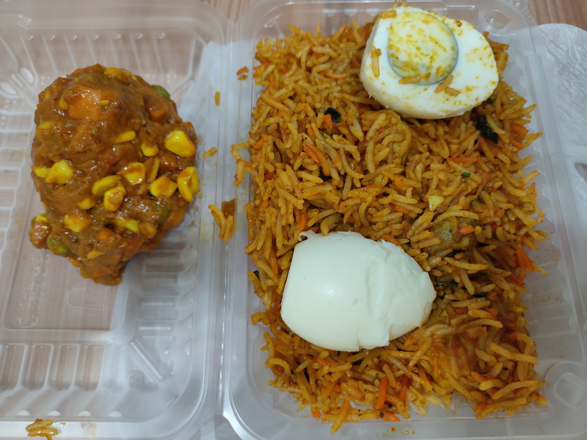网友2020-06-11打包了一份印度香料鸡饭加咖哩杂菜马币12元,约20人民币这是家印度料理餐厅,位于吉隆坡市中心的小印度区。距离中央车站广场不远,马来西亚印度人开的小店。打包了一份印度香料鸡饭加咖哩杂菜马币12元,约20人民币。