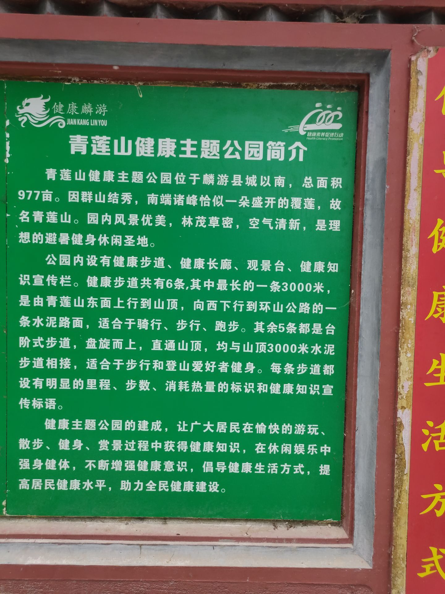 青莲山公园:位于陕西省宝鸡市麟游县城南,青莲山是公园的核心景观青莲山公园:位于陕西省宝鸡市麟游县城南,青莲山是公园的核心景观。青莲山历史悠久,隋唐时皇帝的卫戍部队曾驻扎于此。现在这里群山结秀,树高林密,景色秀美,已经成为市民休闲游览、登山健身的好去处。
