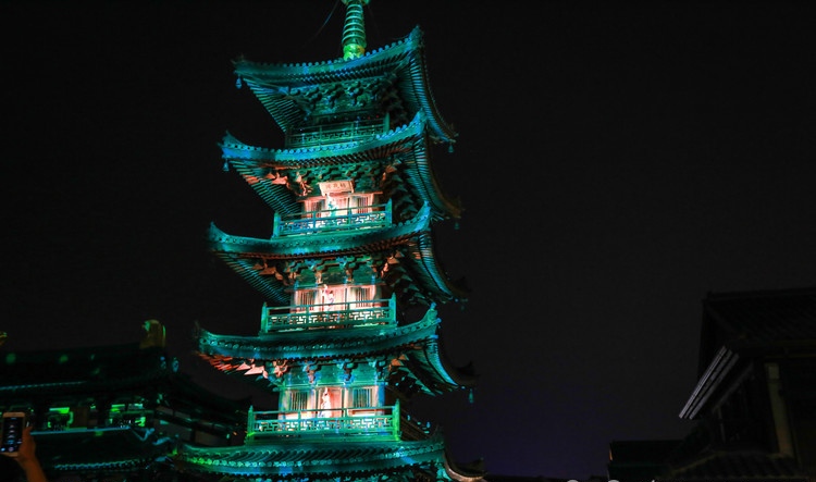 网友2020-06-11拈花塔,为唐风木结构楼阁式佛塔,四方五层,由须弥座台基、塔身、塔刹三部分组成拈花塔,为唐风木结构楼阁式佛塔,四方五层,由须弥座台基、塔身、塔刹三部分组成。 晚上,拈花塔还有亮灯仪式,会有表演,想看的清楚点话,要早点去占个好位置。
