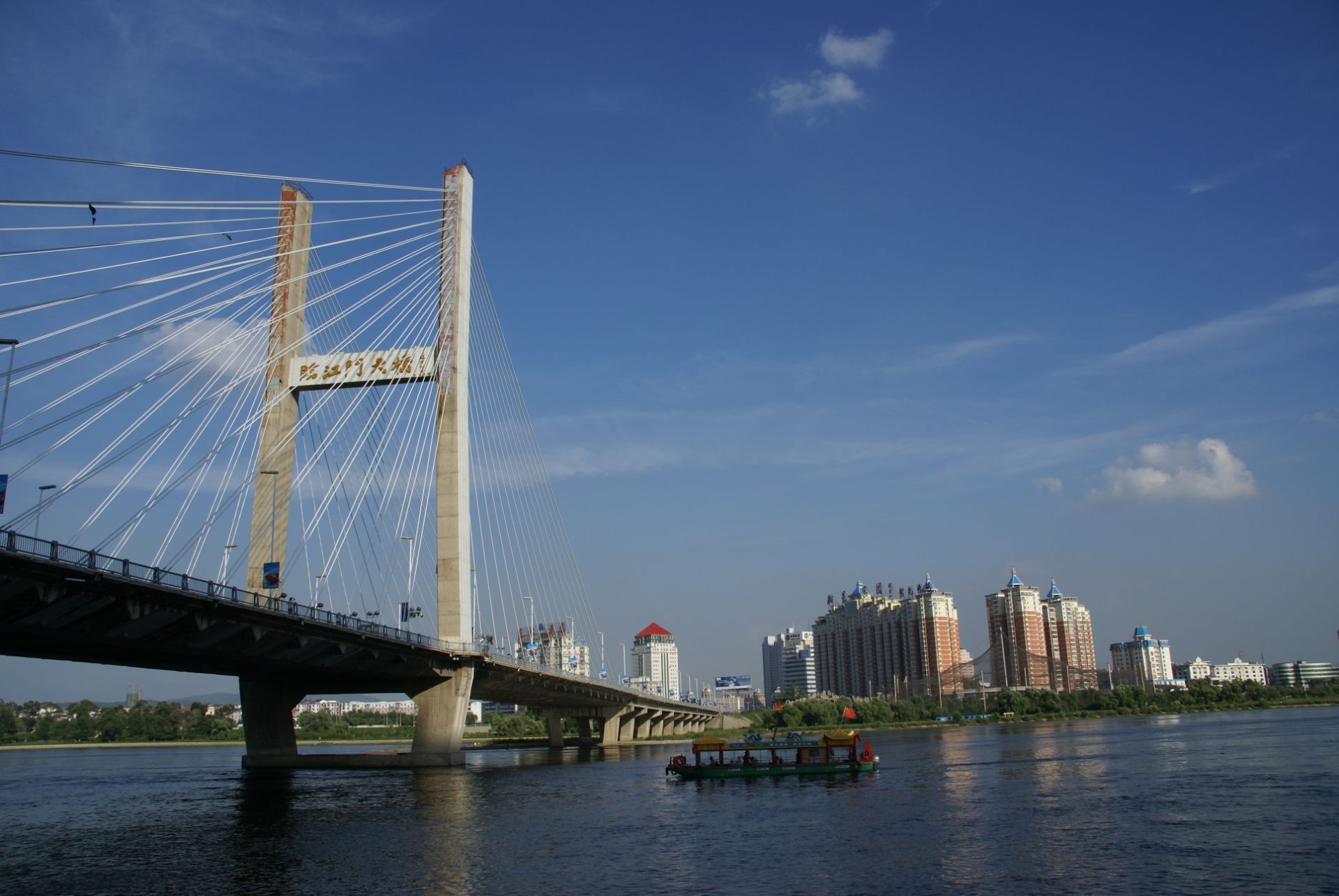 到吉林市去旅游观光可以上临江门大桥看一看,这里有公交车直接到桥边,游览大桥是免费的,从桥上穿越时间不会太长,可以浏览桥下的流水,如果在桥边上走一走,岩浆可以看到许多非常漂亮的景色,我认为汽艇游艇穿江而过,越过大桥底下的景色是最好看的,这里的夏天非常的凉爽。