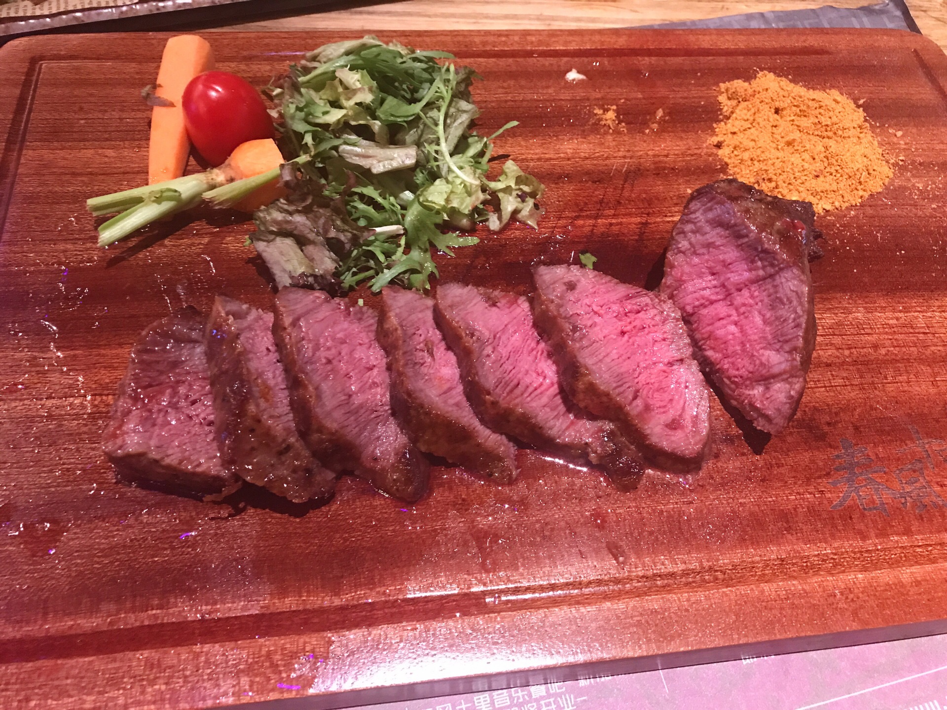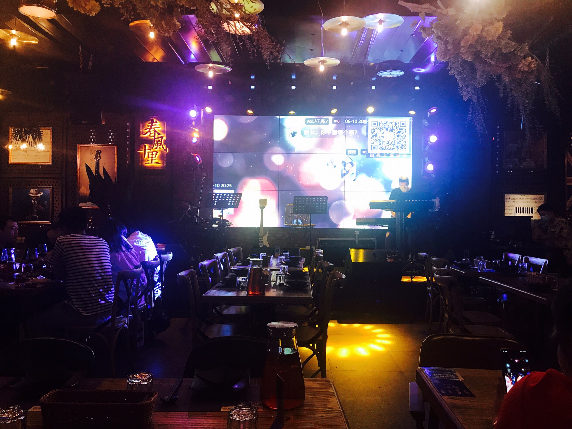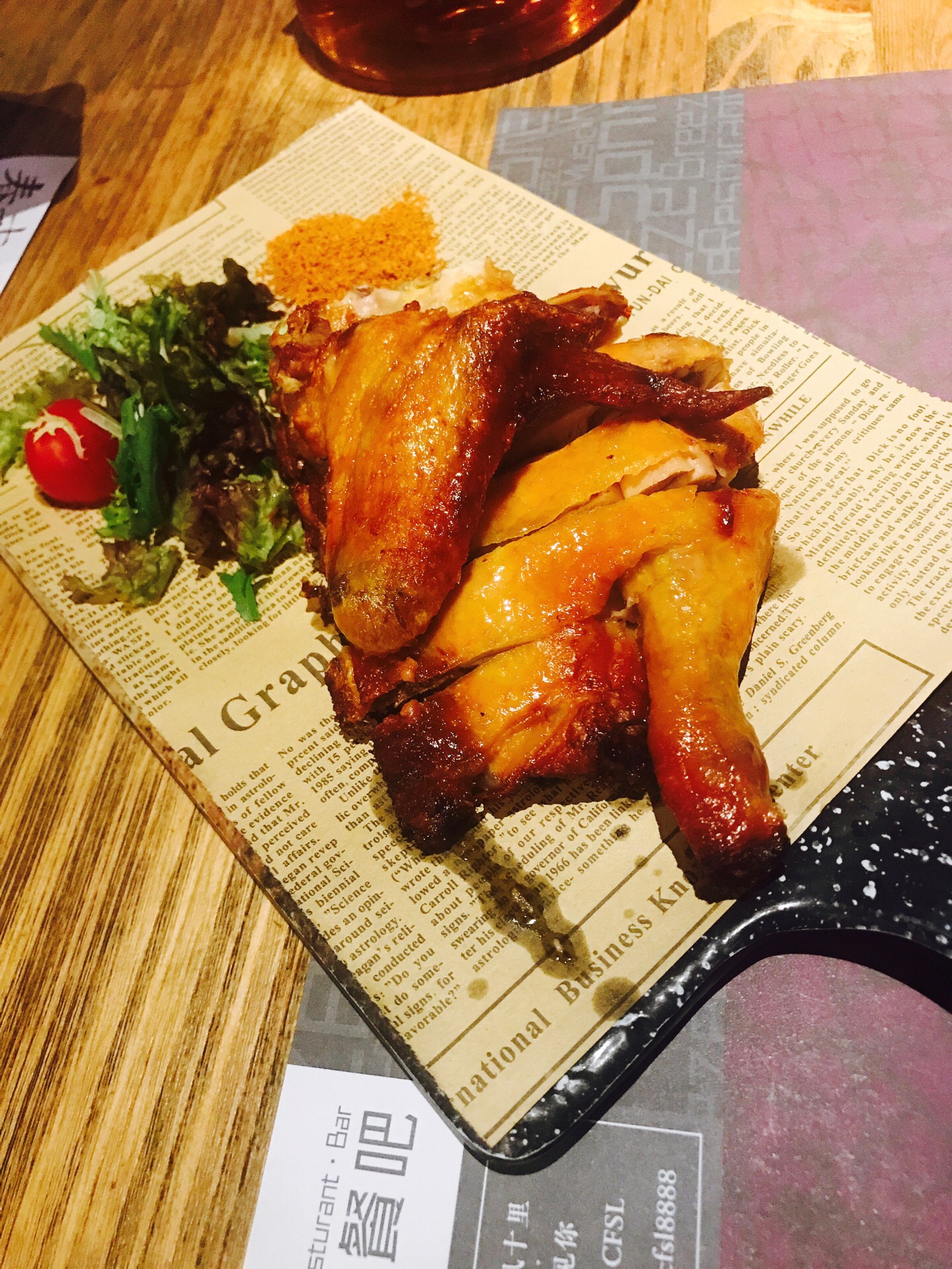西餐酒吧环境很好,布置好多红酒和海报,画画等装饰品,灯光效果有舞台的感觉。 烤原只春鸡是脆皮鸡,有种想用手撕开就吃,大口大口地才过瘾。沾泰式甜辣酱更加开胃。 美国精选牛板腱,牛肉够嫩,火候掌握得很好,喜欢这款原汁原味,不用其他酱汁了。 夏日特饮百香果金桔饮品,有着小清新的感觉,有柑橘柠檬的香气。