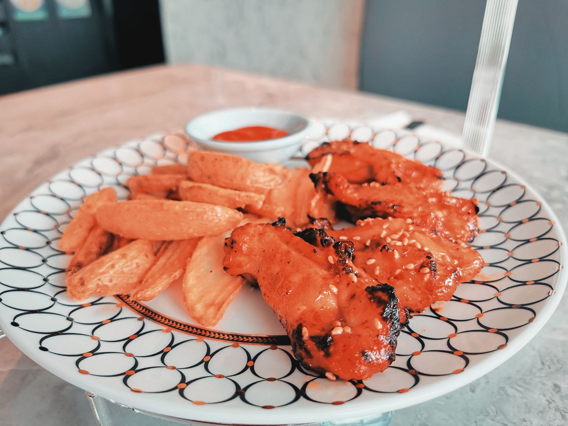 这里要重点pick一下“莫奈花园双人下午茶套餐”,只要99元,三层点心,从咸到甜,最下面一层的鸡翅和薯角很香很酥脆,中层的司康饼一般般可能吃不惯这种实心味道寡淡的饼,沾了酱感觉也一般,最上面一层的一排甜点最得我心,每个味道都很惊艳👍🏻。而且套餐里的美式咖啡和茶类都可以无限续杯,而且全天都可以无限续杯不仅限于下午茶时段。
