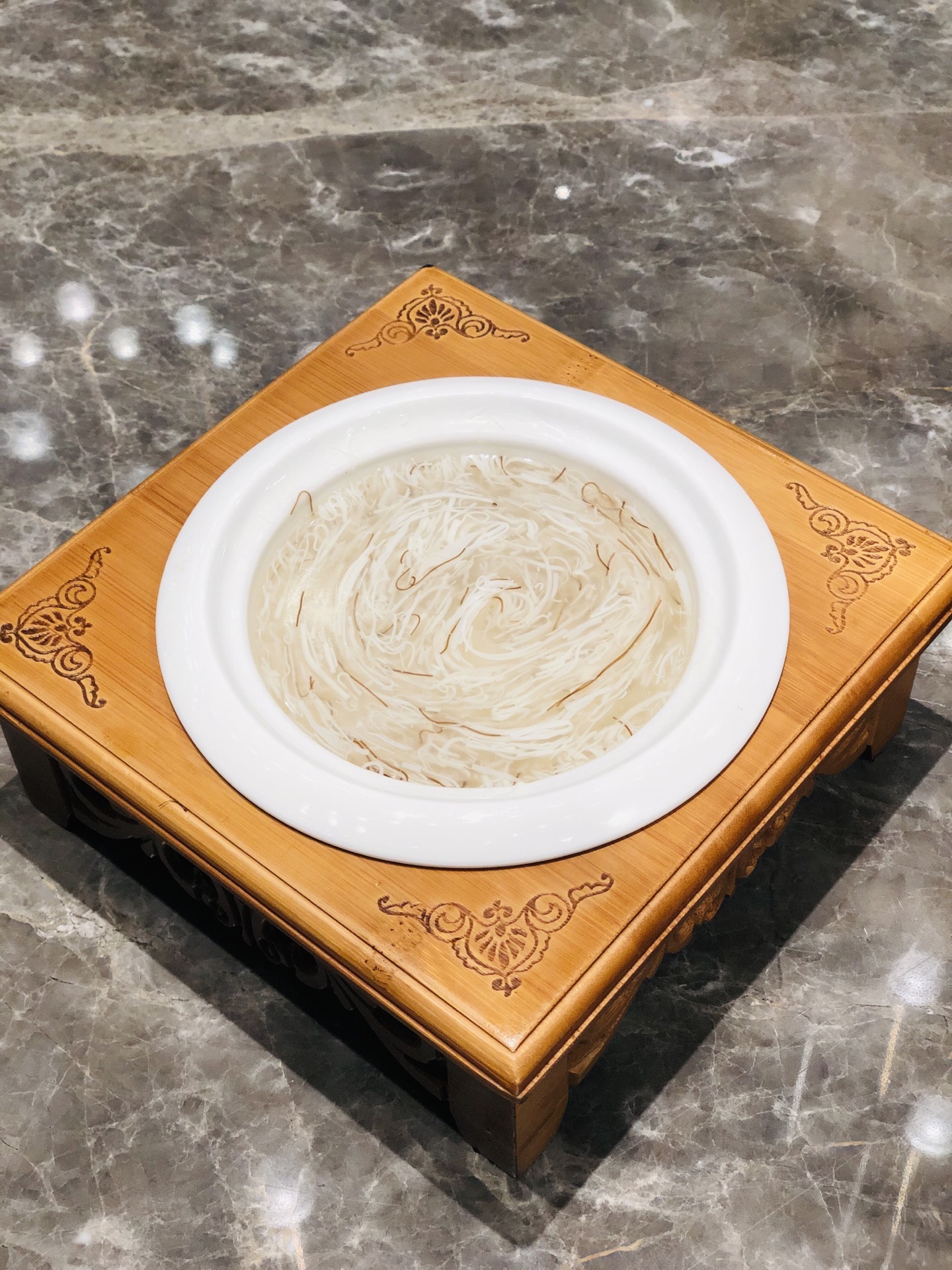 【鸡汤纹丝豆腐】是一道绝对考验厨师刀工的菜品。道具相当复古,咬一口满满的芝士真心好吃