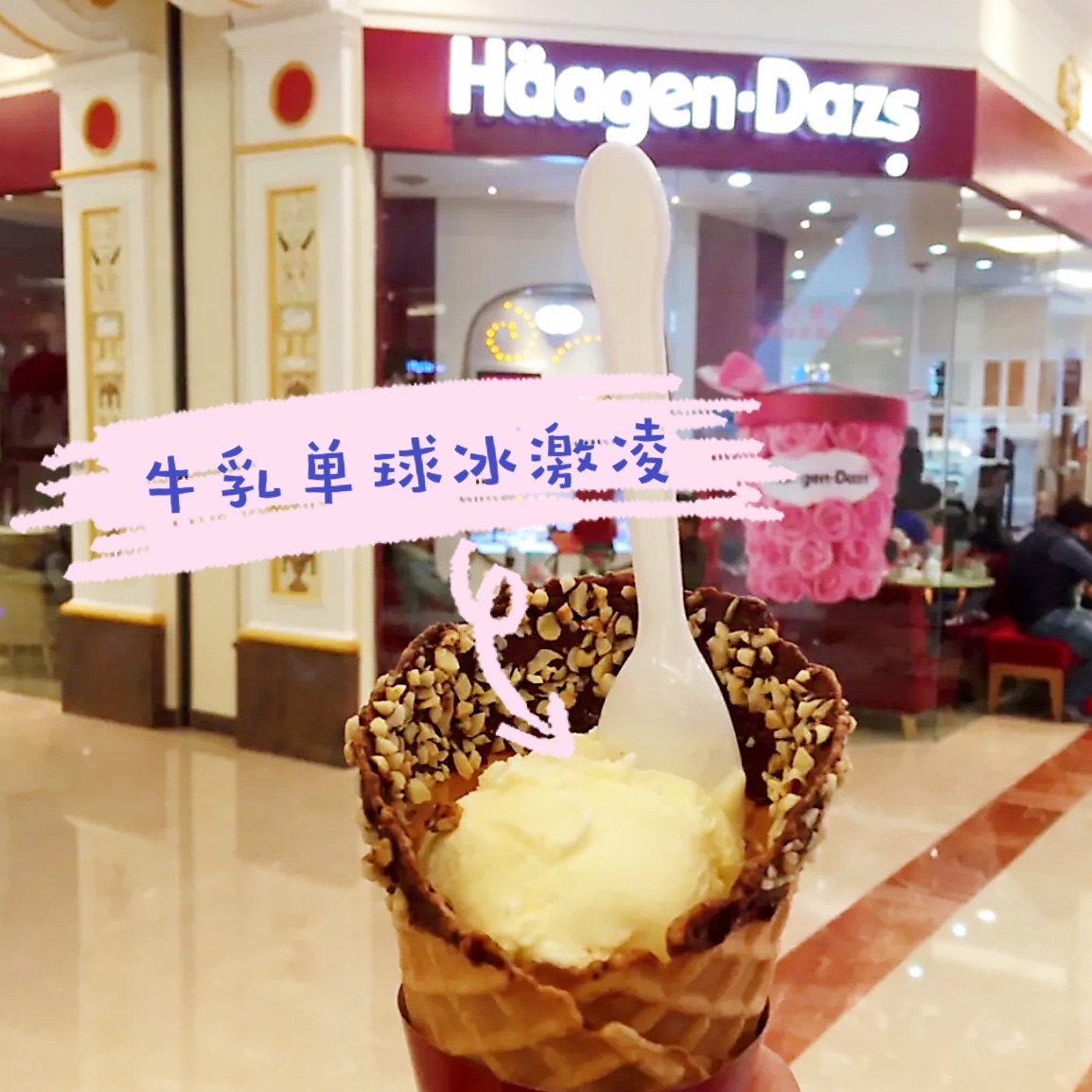 🌈哈根达斯单球冰激凌 ❤️外观: 脆皮甜筒加上最爱的牛乳冰激凌单球,自带滤镜的美貌