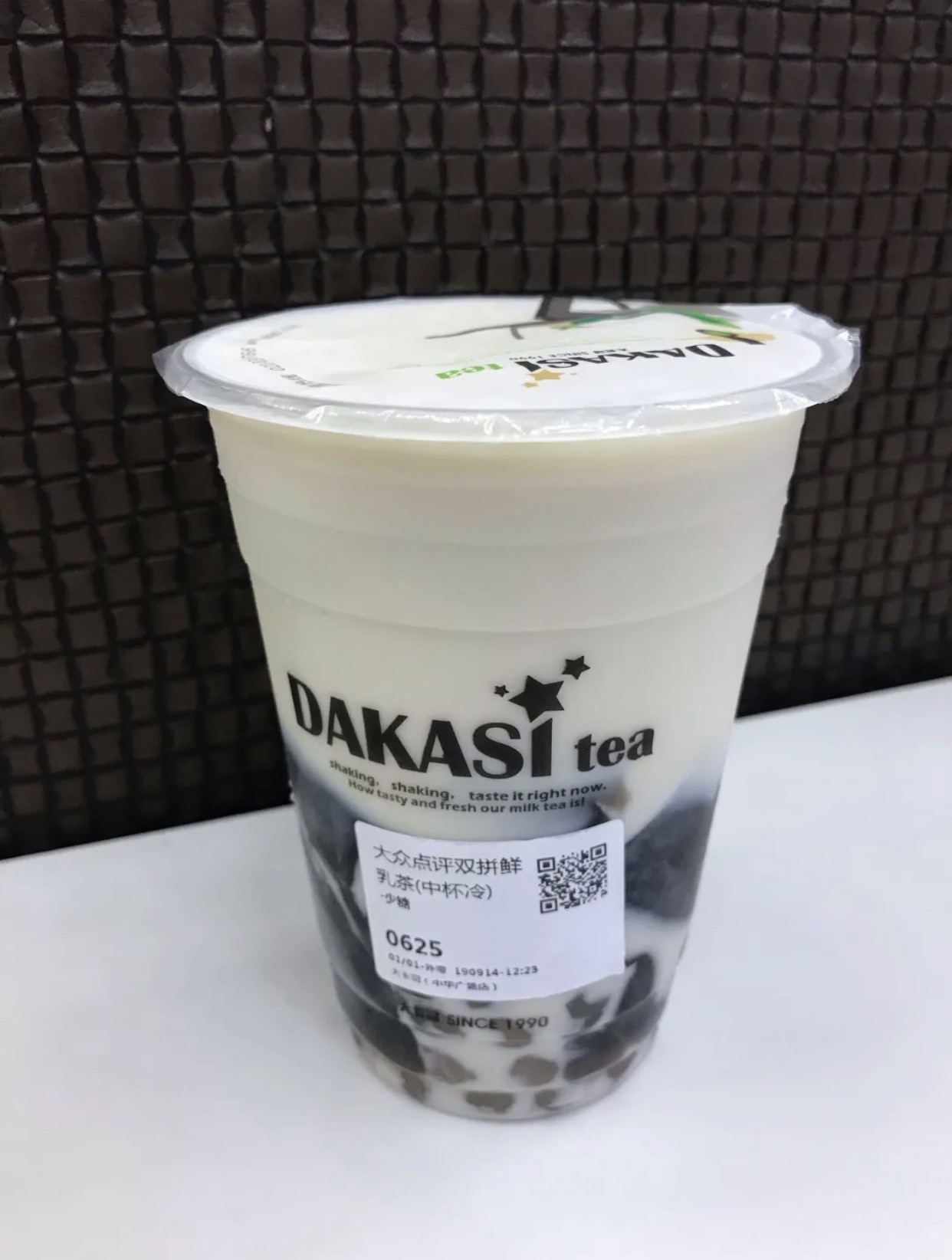 这家大卡司位于中华广场的七楼,那里是一个美食广场的尽头,靠近麦当劳那头,我这杯饮品是秒杀的,价格相对划算一些,这里的饮品有大杯和中杯两种规格,我这一杯是中杯的,也就是小size,店员帮我验证好了,很快饮品就做出来了。要求了微糖,甜度刚刚好,珍珠挺好吃的,软软糯糯,仙草滑溜溜的,用鲜牛奶做的口感很不错。