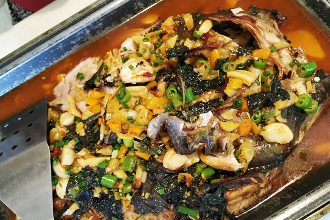 店,于是决定先吃饱再去耍[呲牙] 老板娘和店内小妹很热情,坐下上茶,送上一碟酸辣白萝卜条。接着帮忙下单。咱赶时间,所以就没有吃烤鱼,其实烤鱼应该是这家店的一个特色。我们点了一个39元的酸菜黑鱼片,再加一个18元的炒红菜苔,米饭是用保温瓶装着,非常贴心!这里的服务是非常的周到,环境也很舒适养眼。上菜也比较快,味道也不错