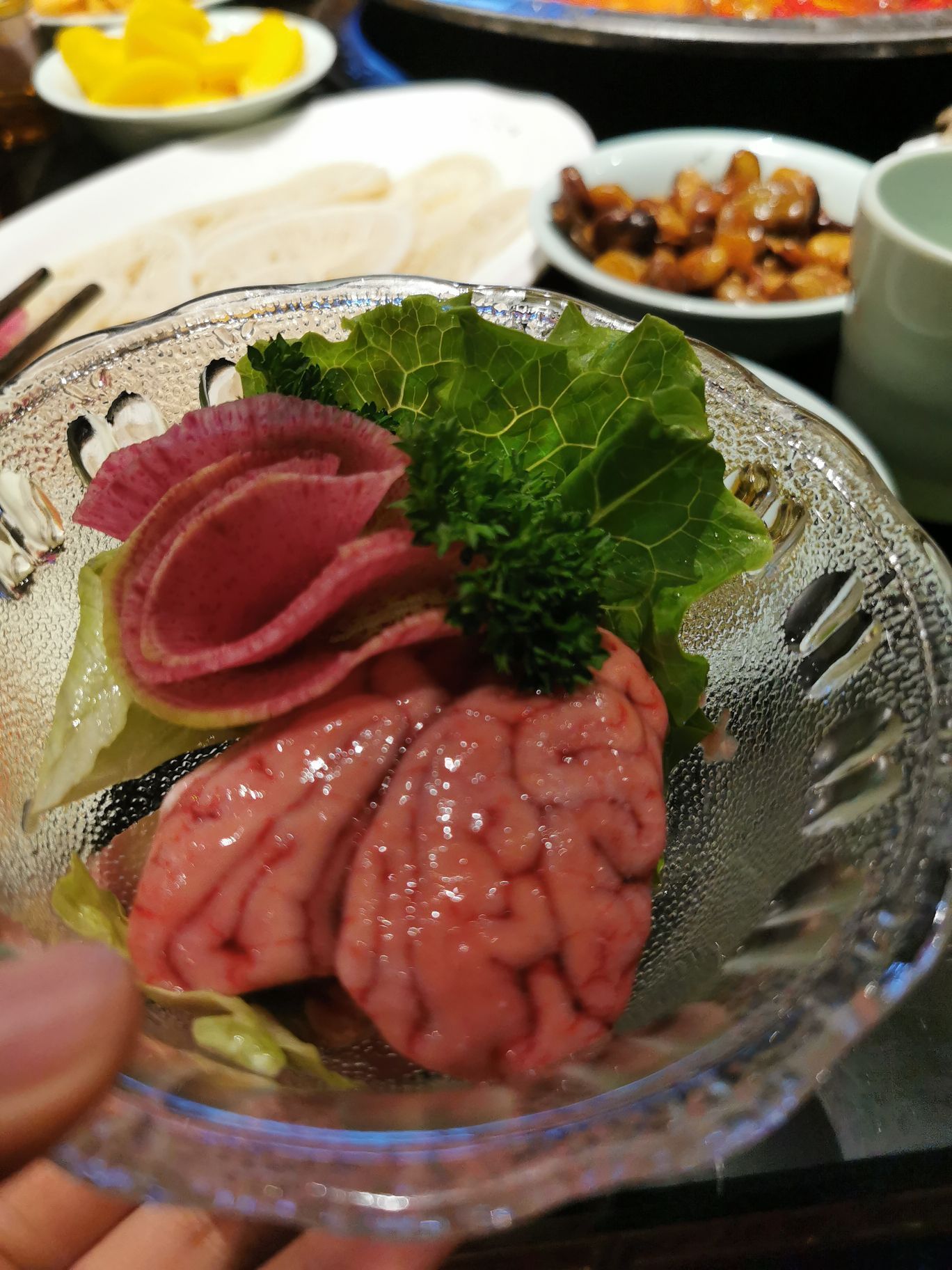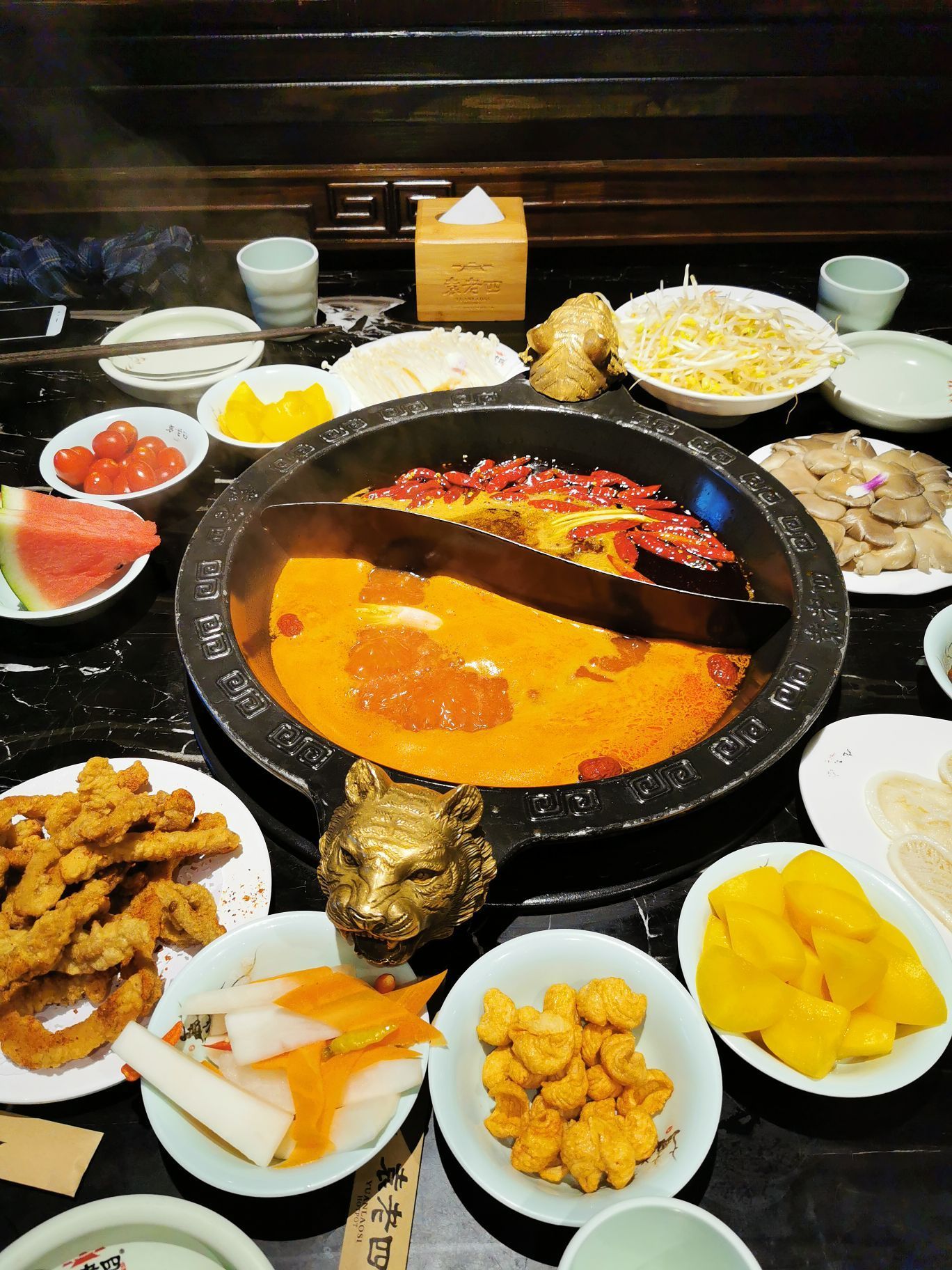 位于龙眠大道地铁一号口三楼,位置特别好找交通也特别方便。 环境:大红灯笼高高挂~有点喜气洋洋的赶脚[偷,店里干净卫生整洁,每一桌都还有手写的温馨提示语。 |番茄锅底^|牛油锅底^因为有不吃辣的朋友(ღ˘⌣˘ღ),所以选择了鸳鸯锅,番茄🍅还是第一次吃,味道不错😊,牛油是它们家的特色每次必点~里面还有诱人的牛骨还是带肉的哦。 |一米鸭肠^和毛肚一样,七上八下就OK了,特别的爽脆、每桌必点[调皮][调皮]。 |特色冰粉^火锅解辣的标配😊,里面的配料也足味道还不错呦。 |聪明脑花^四川人的最爱,粉粉嫩嫩的~入口即化。(一定要吃麻辣味哦) |黄龙川粉^Q弹有劲 |豆芽^锅底提鲜菜品 |外婆酥肉^味道一般般中的一般般,没有以前好吃了,点了一份基本没有动~可惜😔。 |肥牛^火锅必备菜品~肉食动物的最爱 |平菇^|草原千层肚^ 服务: 服务不错喲,回应及时周到,清理桌面也及时,店里还提供不少小食和水果。