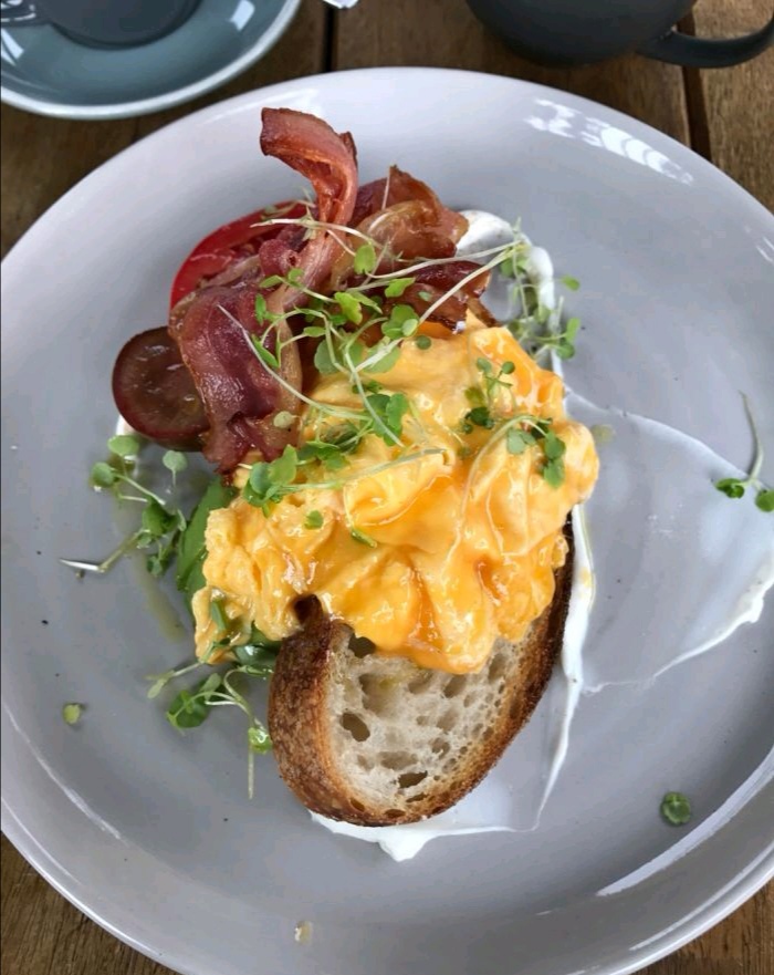 ...也就是培根煮蛋,不过这里的蛋很嫩哦,配上黑胡椒的粉很好吃哦,培根烤的要的有点点焦,面包很不错哦这家早餐店在奥克兰挺火的哦,其实也就是培根煮蛋,不过这里的蛋很嫩哦,配上黑胡椒的粉很好吃哦,培根烤的要的有点点焦,面包很不错哦。