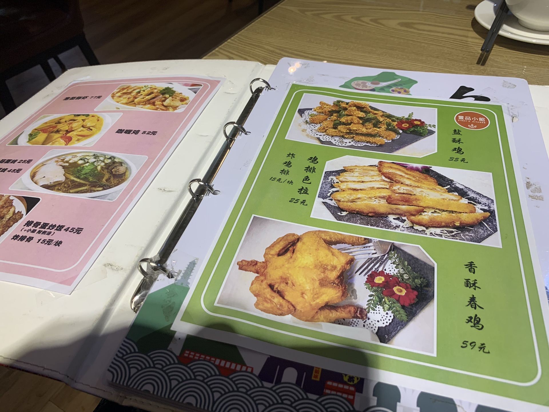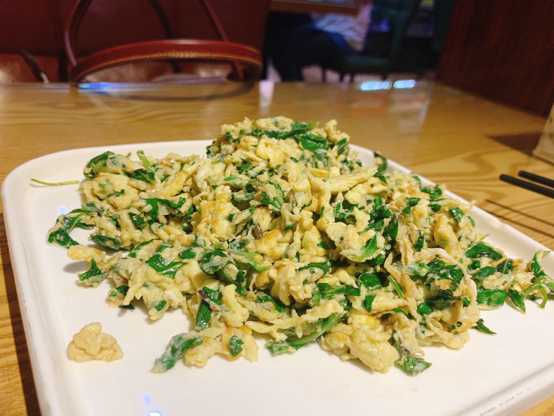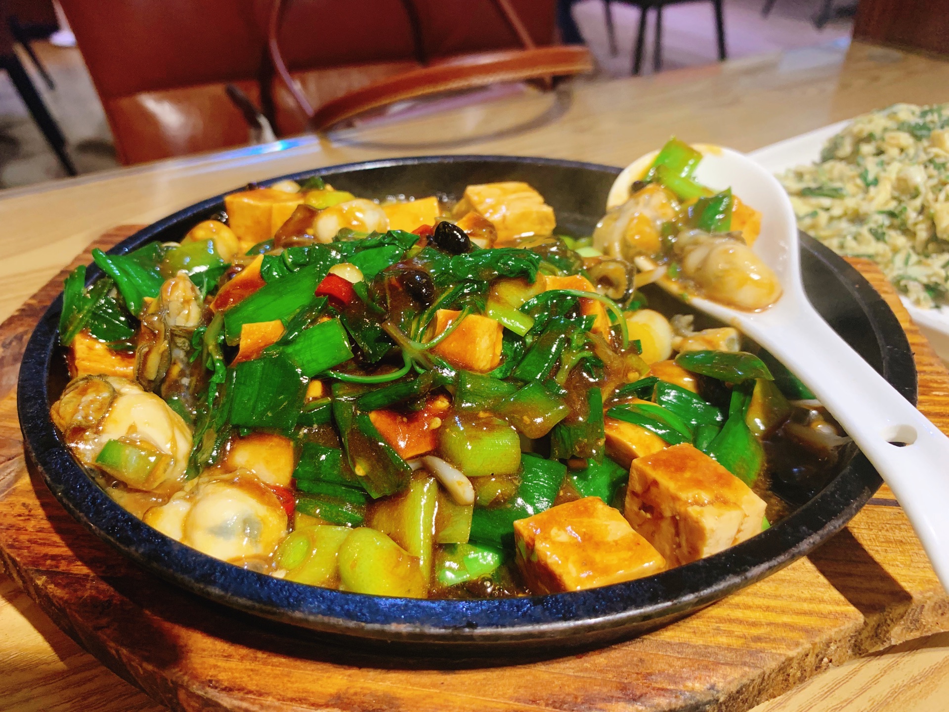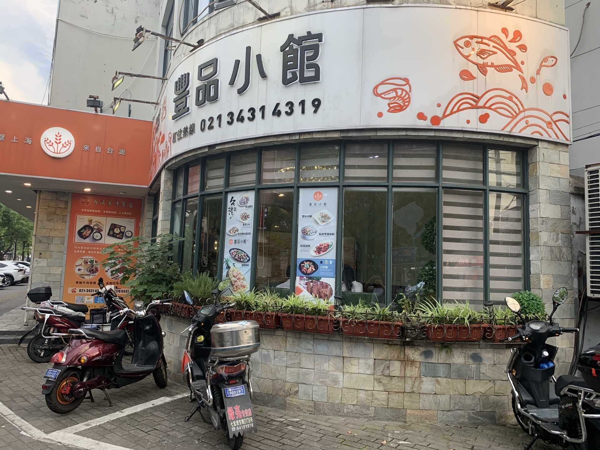据说上海排行前列的台湾菜馆,进去确实不少台湾客人。 [薄荷]环境:紫藤路和青衫路拐角处,所以有些景观位子,灯光暖色调有种温馨,店里沙发座还蛮舒服的,桌子边上也有插座可以充电。 「三杯鸡」味道正宗,调味好吃到连配菜姜片都吃掉了。 「铁板蚵仔」蚵仔很新鲜,和青蒜、豆腐、九层塔(罗勒)一起炒的,很好吃。 「九层塔炒蛋」带着香草的香味,炒蛋还行。 「地瓜叶」烫地瓜叶,也是台菜特色吧。 PS 他家有针对一个人的便当,30块左右,可以作为午餐便当