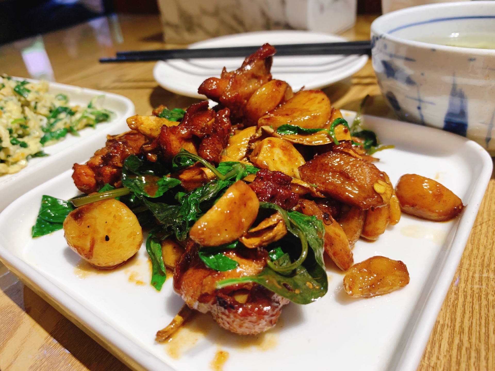 「三杯鸡」味道正宗,调味好吃到连配菜姜片都吃掉了。据说上海排行前列的台湾菜馆,进去确实不少台湾客人