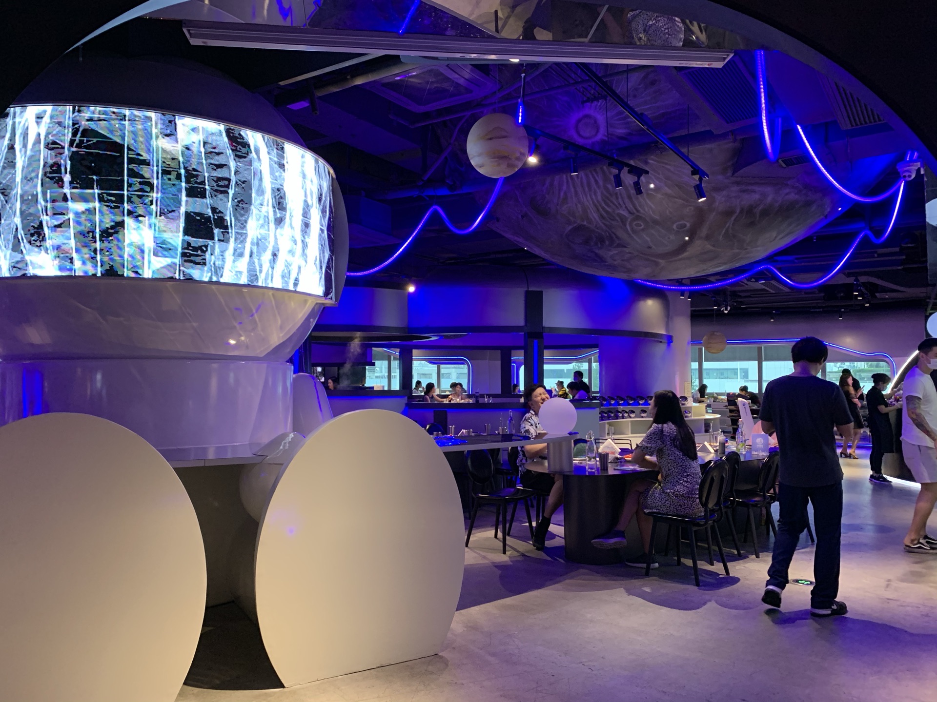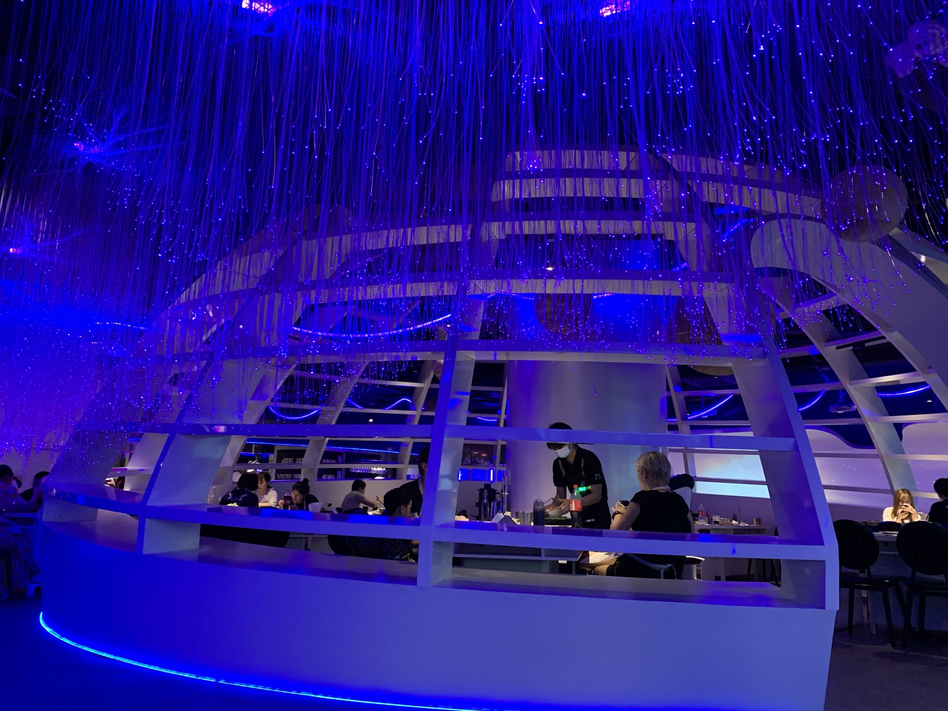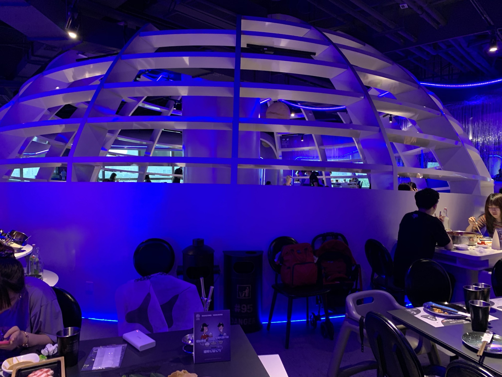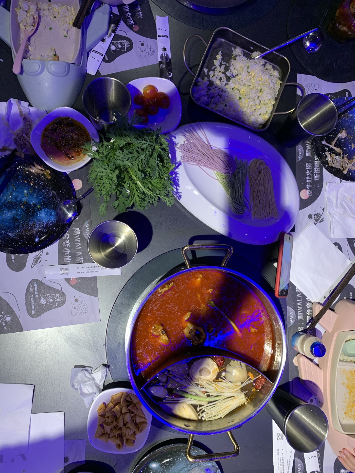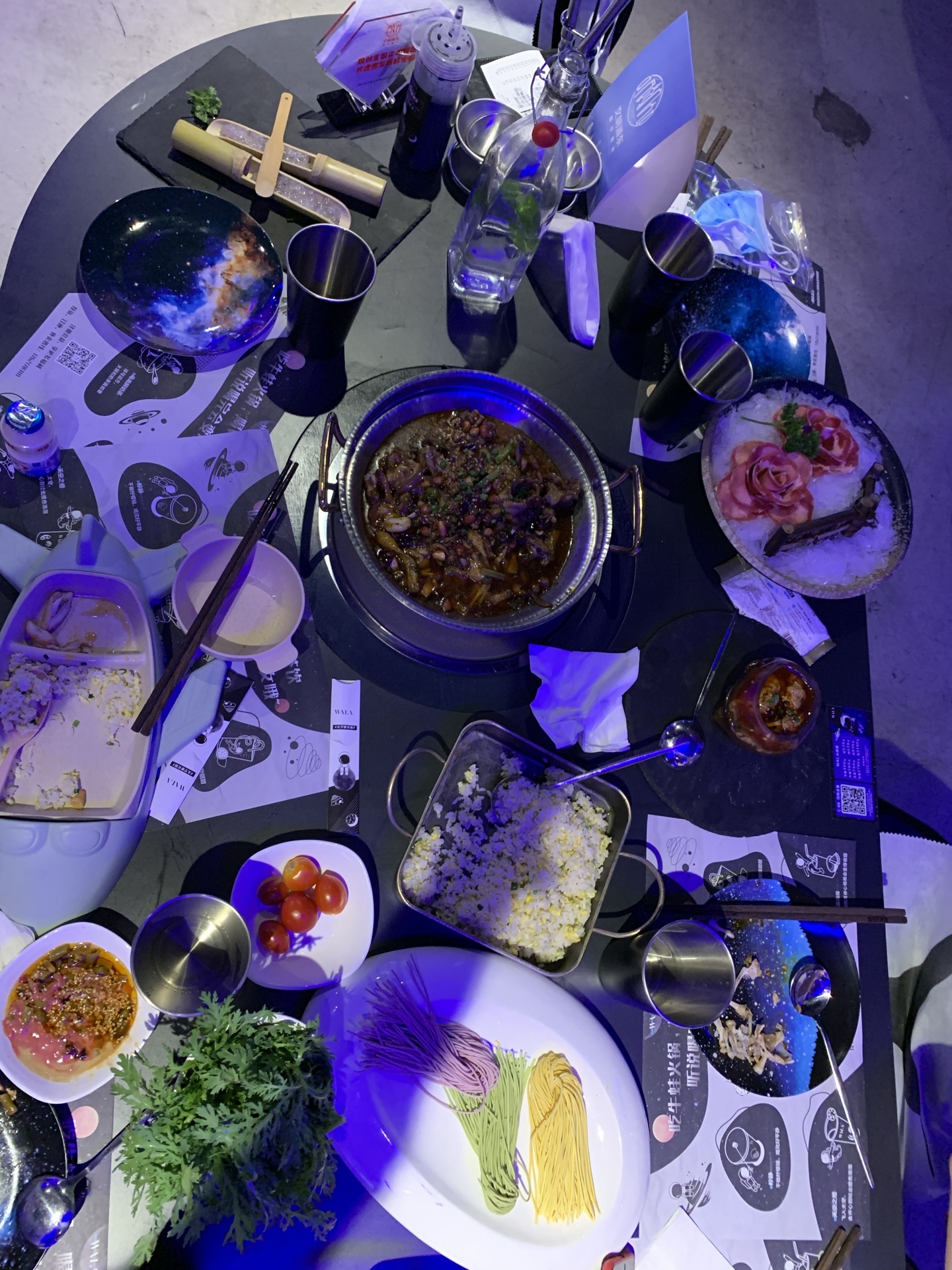 上周六晚上跟随遥妈遥笑姐妹去正大广场蛙辣火锅餐厅晚餐。酒店的设计是太空舱的模式,配置魔幻的灯光色彩,引人入胜。辣牛蛙是当家菜,孩子们吃得是番茄清汤火锅,新鲜的食材涮着吃,美味无比。两个孩子吃了牛蛙、牛舌、肥牛、虾滑、大虾、蔬菜、荞麦面、蛋炒饭,相当于平时1.5倍的食量。服务员态度很好,更换骨盆、添置碗筷随叫随到。许久没有在外用餐了,渡过一个愉快的周末晚上。