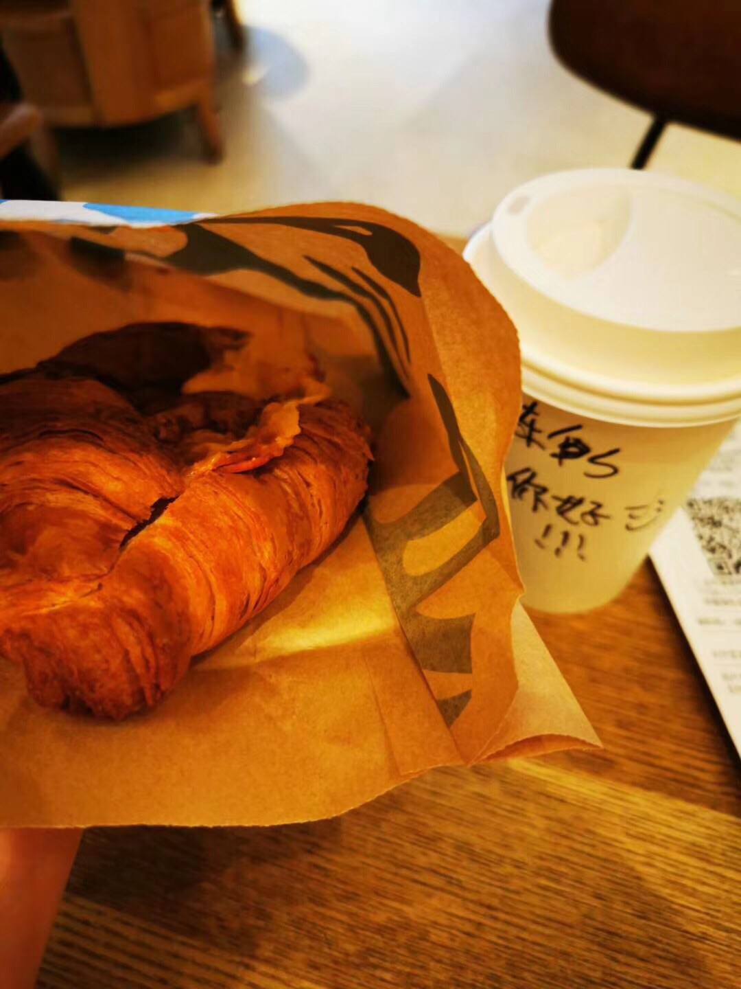 可颂安排 是怀念的味道 但是 吃不饱,不过好好吃可颂安排 是怀念的味道 但是 吃不饱,不过好好吃。 默默加了一份云石 作为这两天无限排队的奖励 为何更换了低因 半杯馥芮白 依然困的东倒西歪 顺风车 滴司机