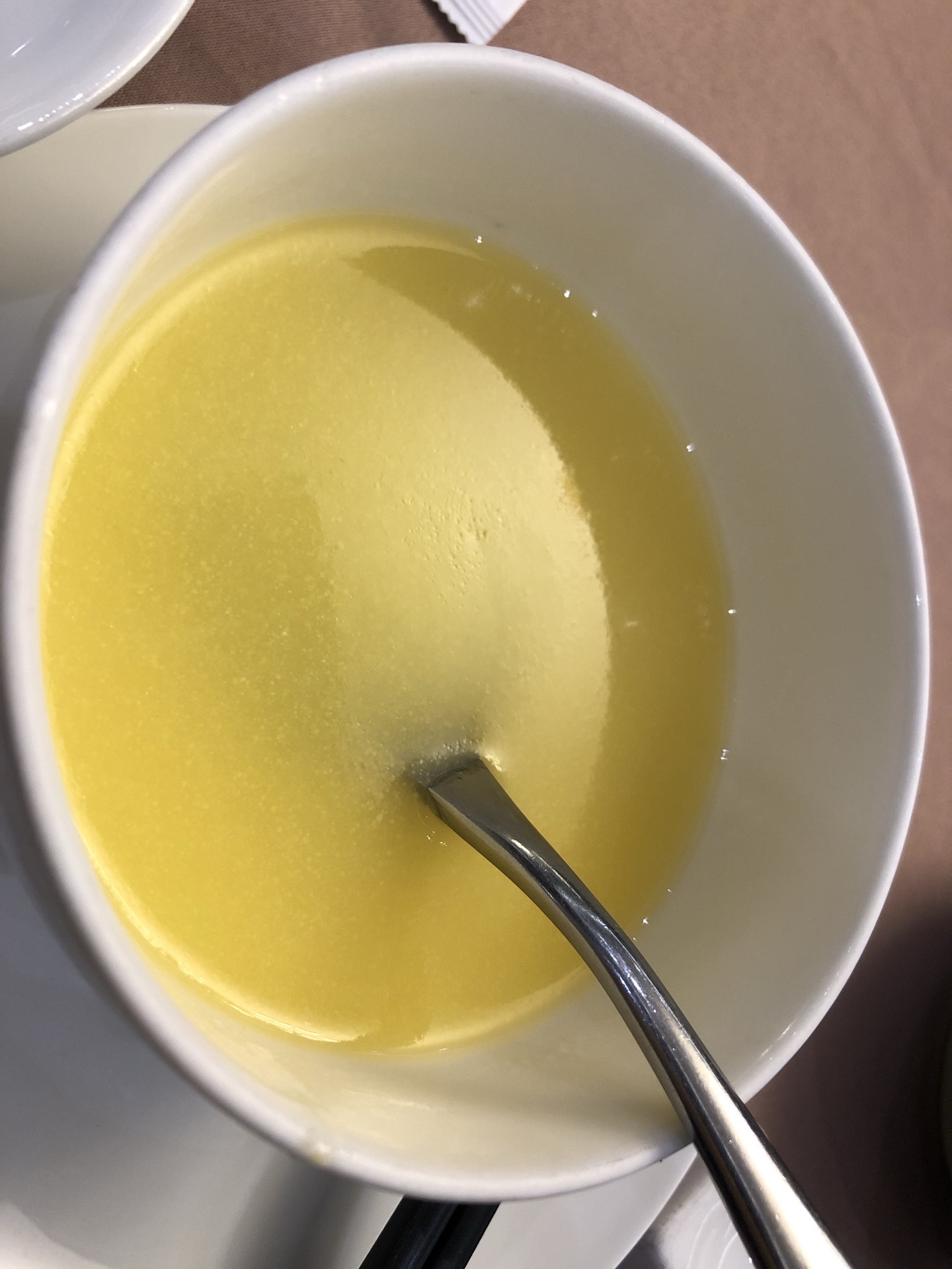 朋友约吃饭在老山东。绿地缤纷城的直达电梯有点难找。工作日晚上人不多。 两个人点了5个菜品,小米粥送的,熬的很粉,口感好。 鲅鱼水饺尝鲜的,感觉一般。 猪手好吃,海鲜疙瘩汤也不错。 最后还送了水果。 服务真的不错,中间换了两次骨盆。适时来加水。猪手差点要点两个,看了我们点的菜也说够了,确实,点两个就要浪费了。桌上写着光盘行动。值得赞许。
