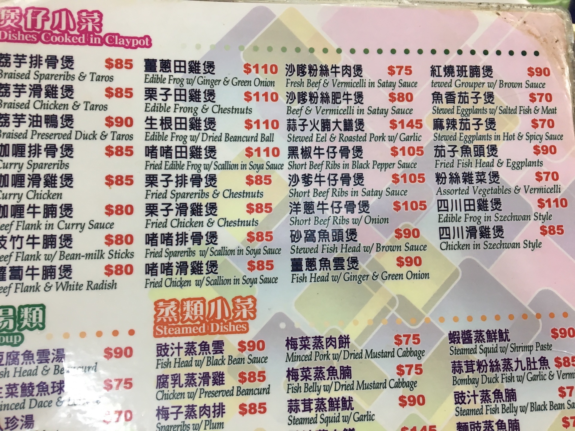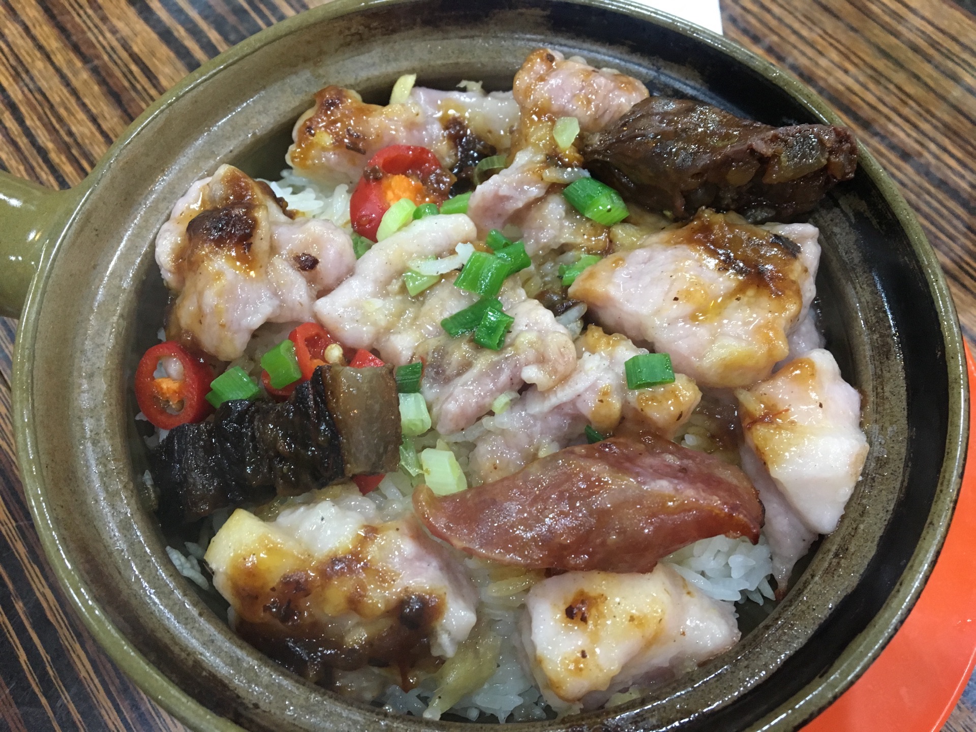 在当地很受欢迎的坤记煲仔小菜,如果没有预约的话,一定要在18:00开门之前就去等位。因为就算里面有空位,老板也会问你有没有电话预约,如果没有的话那么就等着吧,慢慢地等预约的人都来吃了以后才能轮到你。一开门就去的话,大概率是可以立马就有座,三四十分钟吃完之后,预约的人也差不多就来了。煲仔饭的花样非常的多,看得我眼花缭乱,最受欢迎的是白鳝滑鸡煲仔饭、猪骨煲、窝蛋牛肉煲仔饭、还有腊肠排骨煲仔饭,照这几样点就不会错。